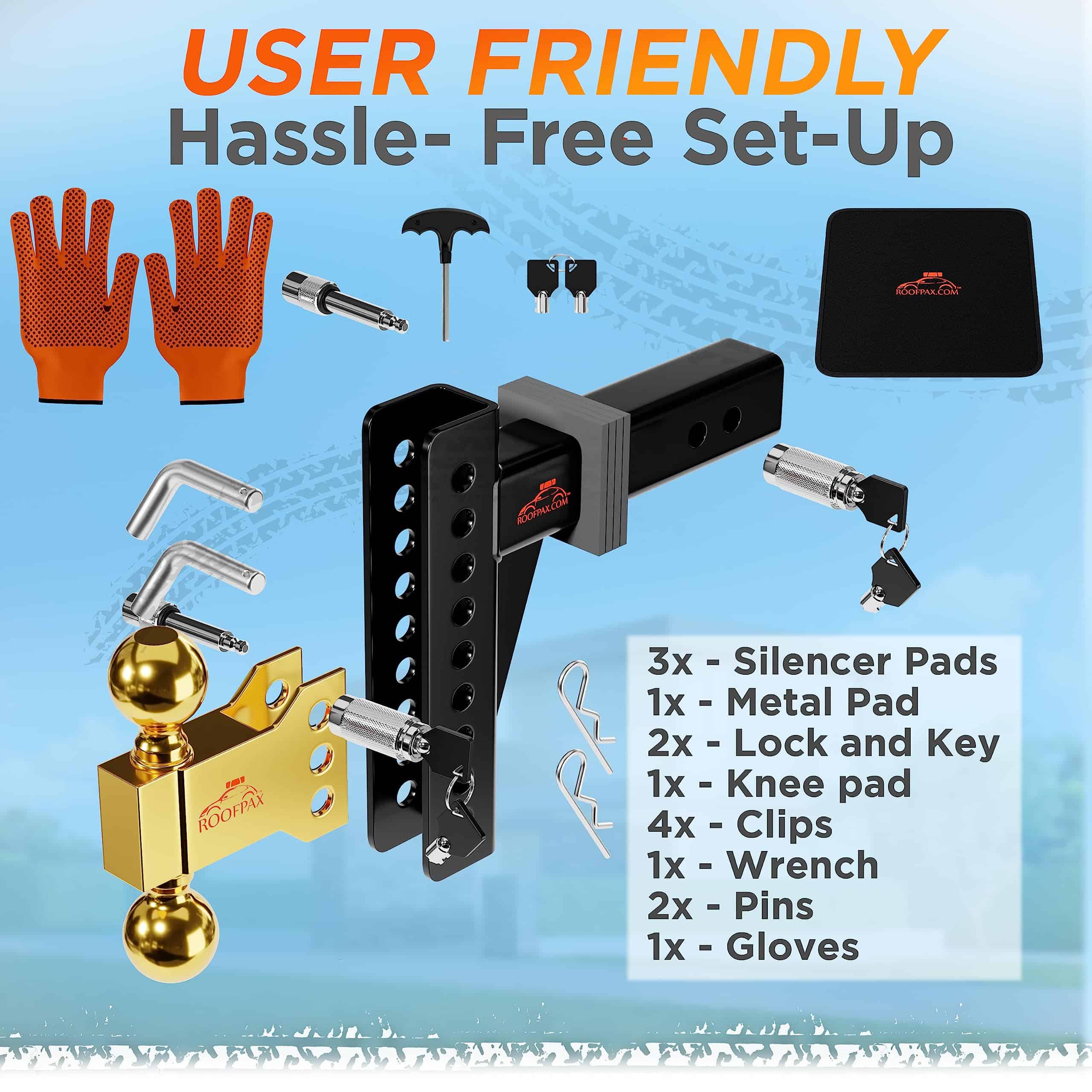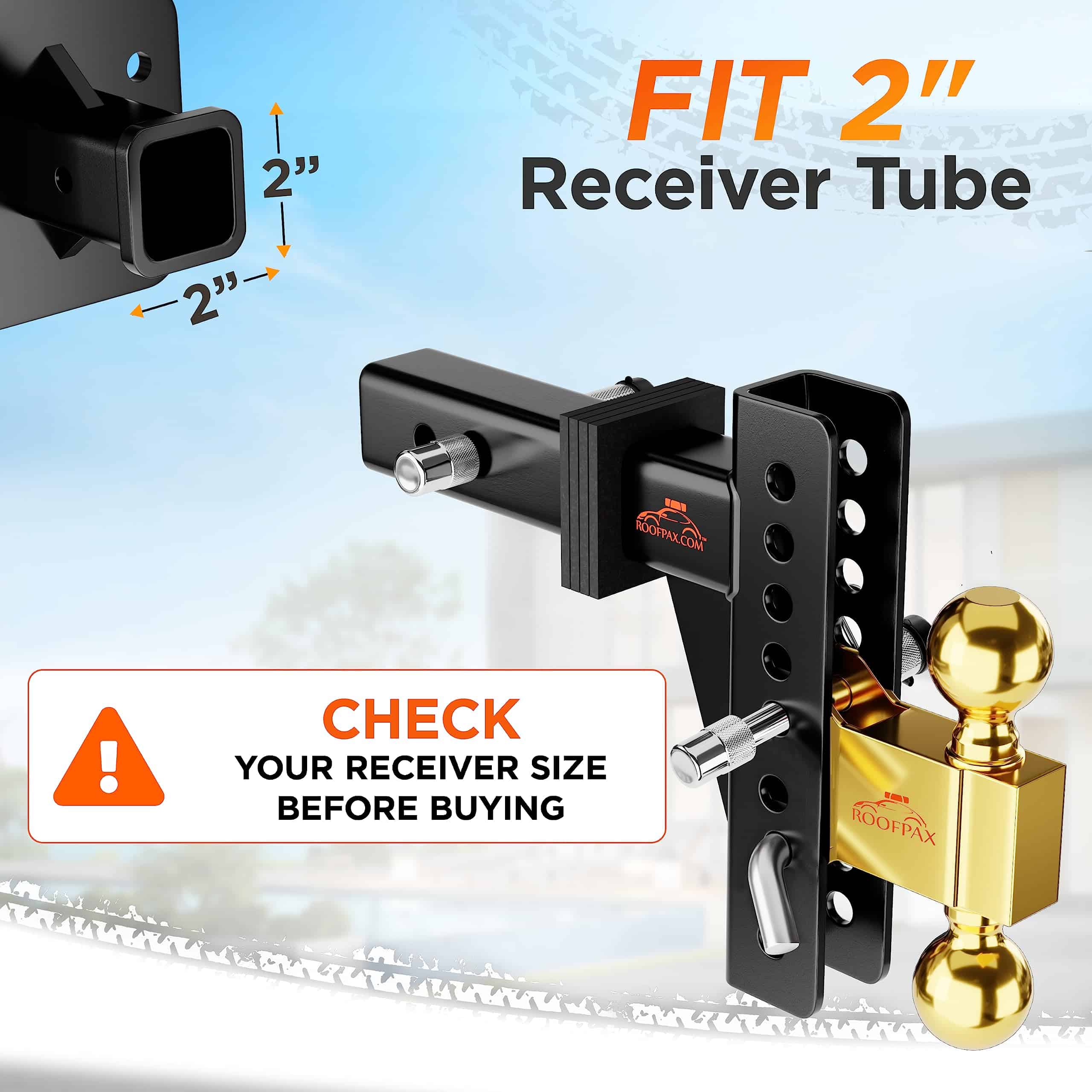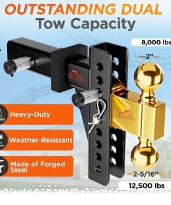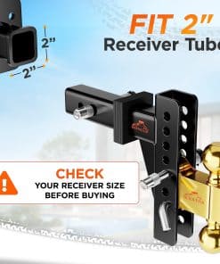 2. Enganche de receptor ajustable: Ajuste fácilmente la altura y la caída de este receptor de enganche de remolque para que coincida con sus requisitos de remolque. Compatible con receptores de 2 pulgadas e incluye una versátil bola de enganche de 2 pulgadas.