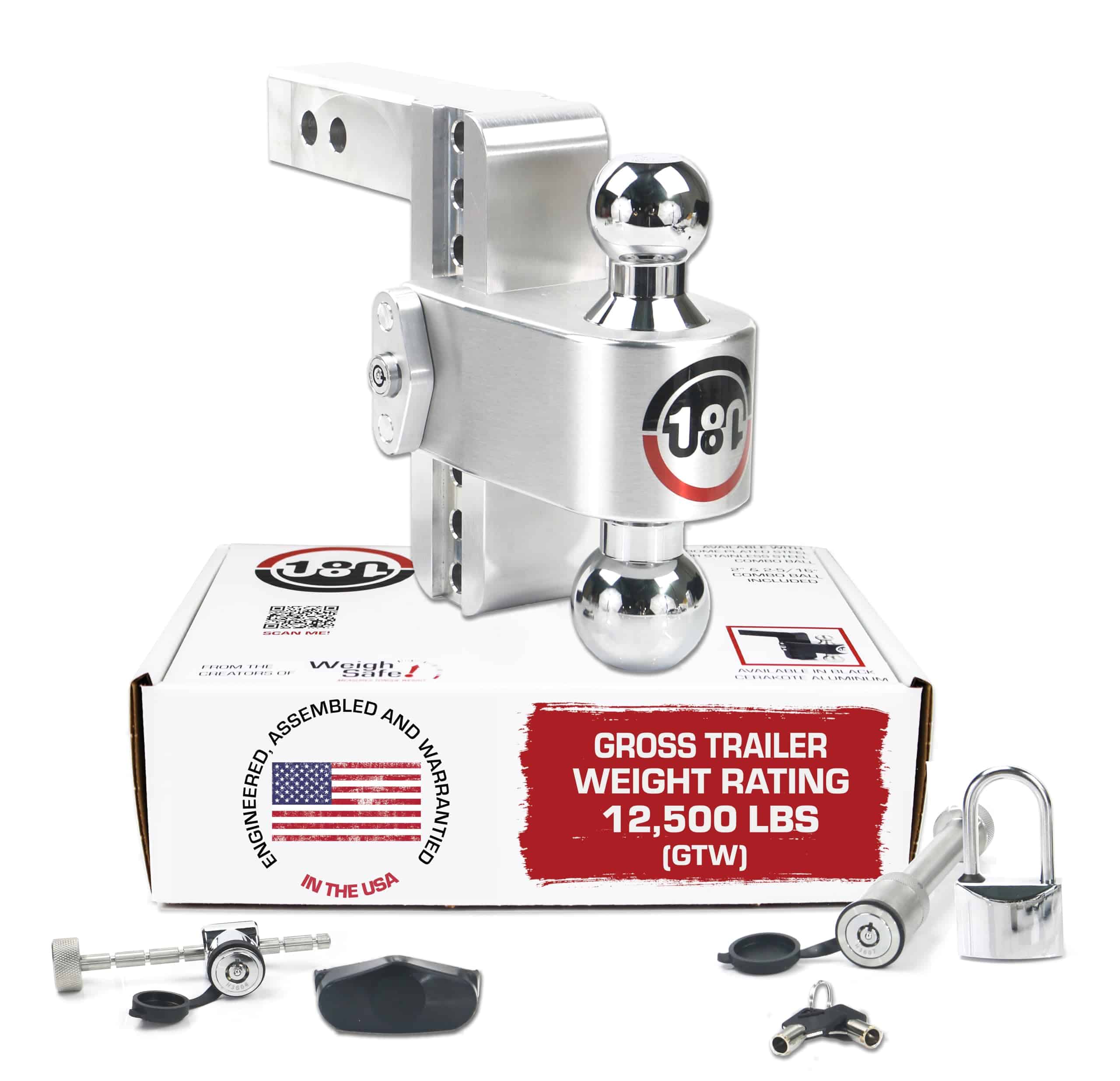 2. ENGANCHE DE BOLA AJUSTABLE DE 6″ Y PLEGABLE: Enganche de 6″ de caída y 7″ de elevación, se ajusta en incrementos de 1″ para obtener el ajuste perfecto para cualquier altura de remolque. Este enganche de Weigh Safe se puede guardar fácilmente debajo de su vehículo cuando no está en uso.