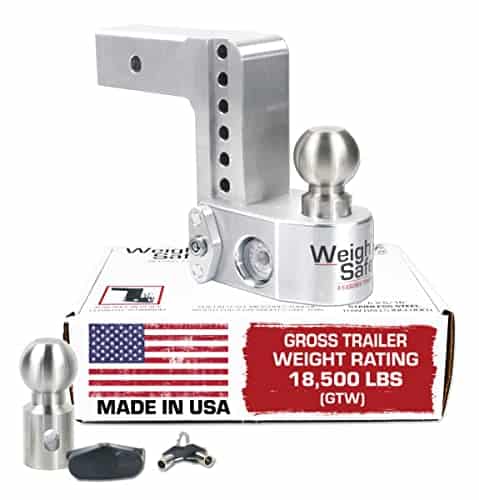 Weigh Safe es el líder de la industria del remolque para la tranquilidad al remolcar. El enganche de caída Weigh Safe, construido de aluminio macizo y acero inoxidable, es el único enganche de bola ajustable disponible con una escala incorporada que proporciona una lectura instantánea del peso de la lengua de tu vehículo. Esta medición te permite ajustar tu carga antes de ponerte en marcha, lo que se traduce en una experiencia de remolque mucho más segura. Con calificaciones de peso que van desde 10,000 lbs hasta 21,000 lbs, nuestros enganches de bola están diseñados para satisfacer las necesidades de nuestros clientes. Nuestro enganche de bola ajustable con escala incorporada es fácil de utilizar y proporciona automáticamente una medición de peso de la lengua cada vez que acoplas tu remolque, eliminando la necesidad de básculas comerciales separadas y a menudo difíciles de operar. Cuando se coloca en el receptor de tu vehículo y se acopla a tu remolque, el peso del enganche de tu remolque empujará hacia abajo la bola de remolque, que a su vez empujará hacia abajo un pistón hidráulico interno que descansa sobre una capa de aceite hidráulico industrial. Cuando el pistón aplica presión al aceite hidráulico industrial, la lectura de presión se muestra en el medidor de acero inoxidable de alta resistencia. Esta medición te permitirá ajustar tu carga para lograr el 10-15% de GTW (Peso Bruto del Remolque) que se requiere colocar en tu enganche de bola mientras remolcas. Esto ayudará a eliminar tanto la oscilación del remolque, la principal causa de las fatalidades relacionadas con el remolque en EE. UU., como el carril invertido que reduce en gran medida la capacidad de tu vehículo para reaccionar mientras estás en la carretera. Este enganche de bola incluye tanto una bola de remolque de 2″ como una de 2-5/16″, lo que le permite ser utilizado con una amplia variedad de remolques y aplicaciones. La altura ajustable te brinda la flexibilidad para remolcar una variedad de remolques con una variedad de vehículos. Con la flexibilidad incorporada, este será el último enganche de bola que poseerás. Este enganche de bola ajustable también puede ser utilizado en la posición de aumento hasta la altura máxima del enganche de bola. ¡No estás remolcando? ¡No hay problema! Simplemente retira el deslizador