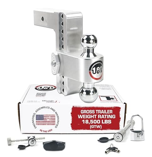 Enganche de remolque ajustable Weigh Safe, enganche de gota ajustable de 8″ para receptores de 2.5″ con juego de 4 cerraduras iguales, enganche de remolque de aluminio resistente con bolas de remolque cromadas, 18,500 GTW. Este enganche de remolque ajustable es la solución perfecta para tus necesidades de remolque. La bola de remolque cromada de acero de 8″ es compatible con receptores de 2.5″, permitiéndote conectarla a remolques con acoplamientos de 2″ y 2-5/16″. Con un ajuste en incrementos de 1″, puedes personalizar la altura del enganche para adaptarse a cualquier remolque. El diseño antirrobo garantiza la seguridad de tu enganche, protegiéndolo de posibles robos. Este enganche de remolque de alta calidad viene con un juego de cuatro piezas con llave igual, que incluye un cierre de doble pasador, cierre de receptor, cierre de acoplador y candado, todo con la misma llave para mayor comodidad. Fabricado en EE. UU. con aluminio de grado aeronáutico y acero inoxidable, este enganche de remolque garantiza una capacidad de remolque de 18,500 lbs, haciéndolo ideal para todas tus necesidades de remolque. ¡Confía en Weigh Safe para tus aventuras de remolque!