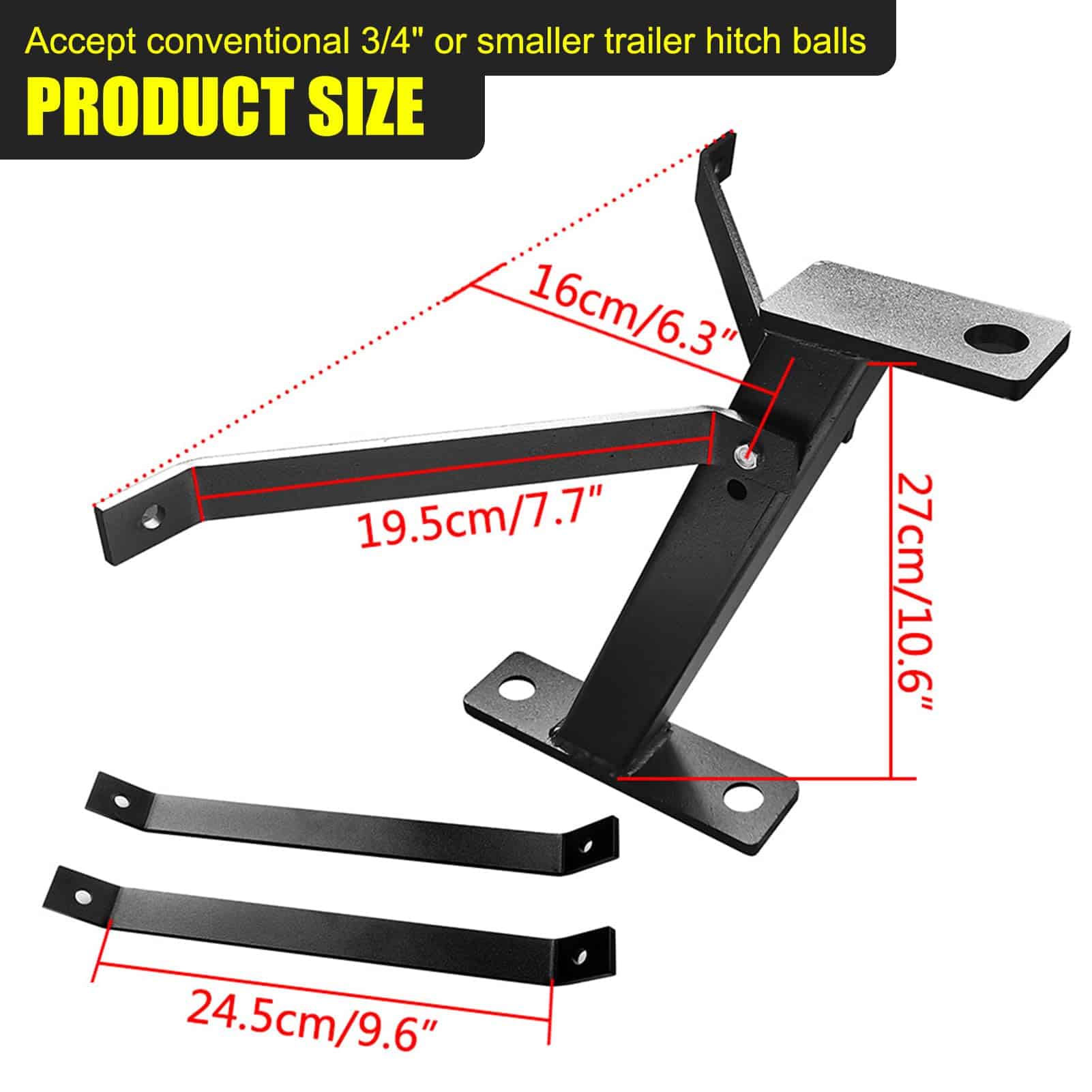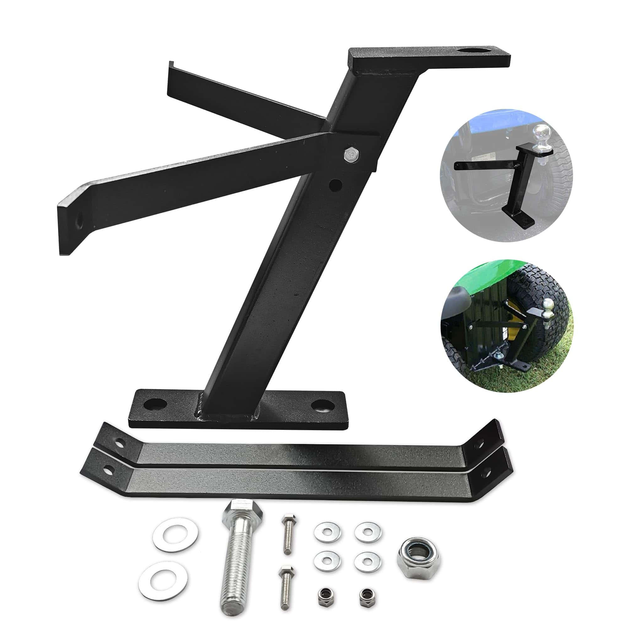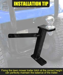 Enganche de Remolque para Tractor de Cortacésped KAIRAY Jardín Pro Tow Mower Hitch Kit Acabado en Negro con Recubrimiento en Polvo. Es una mejora al cortacésped tradicional y se convierte en una herramienta más conveniente que puede remolcar pequeños remolques. Puede llevarse basura en UTV, traer leña o simplemente colocar el bote de esquí en el garaje de forma rápida y sencilla. Se puede instalar en la mayoría de los cortacéspedes tradicionales; Acepta la mayoría de las bolas de enganche de remolque convencionales de 3/4″ o menos; las bolas de enganche de remolque no están incluidas. Hecho de acero resistente, con un duradero recubrimiento en polvo negro, que puede resistir el polvo y la corrosión y prolongar la vida útil. Fijar el enganche de remolque para cortacésped a la altura correcta puede mantener perfectamente el equilibrio del remolque. Elija las barras más cortas o las más largas según el modelo de cortacésped. Algunos modelos de tractores pueden necesitar modificaciones, cortes, dobleces y perforación de nuevos agujeros para encajar perfectamente. Incluye soporte al cliente y garantía de 1 AÑO para brindar un servicio de calidad.