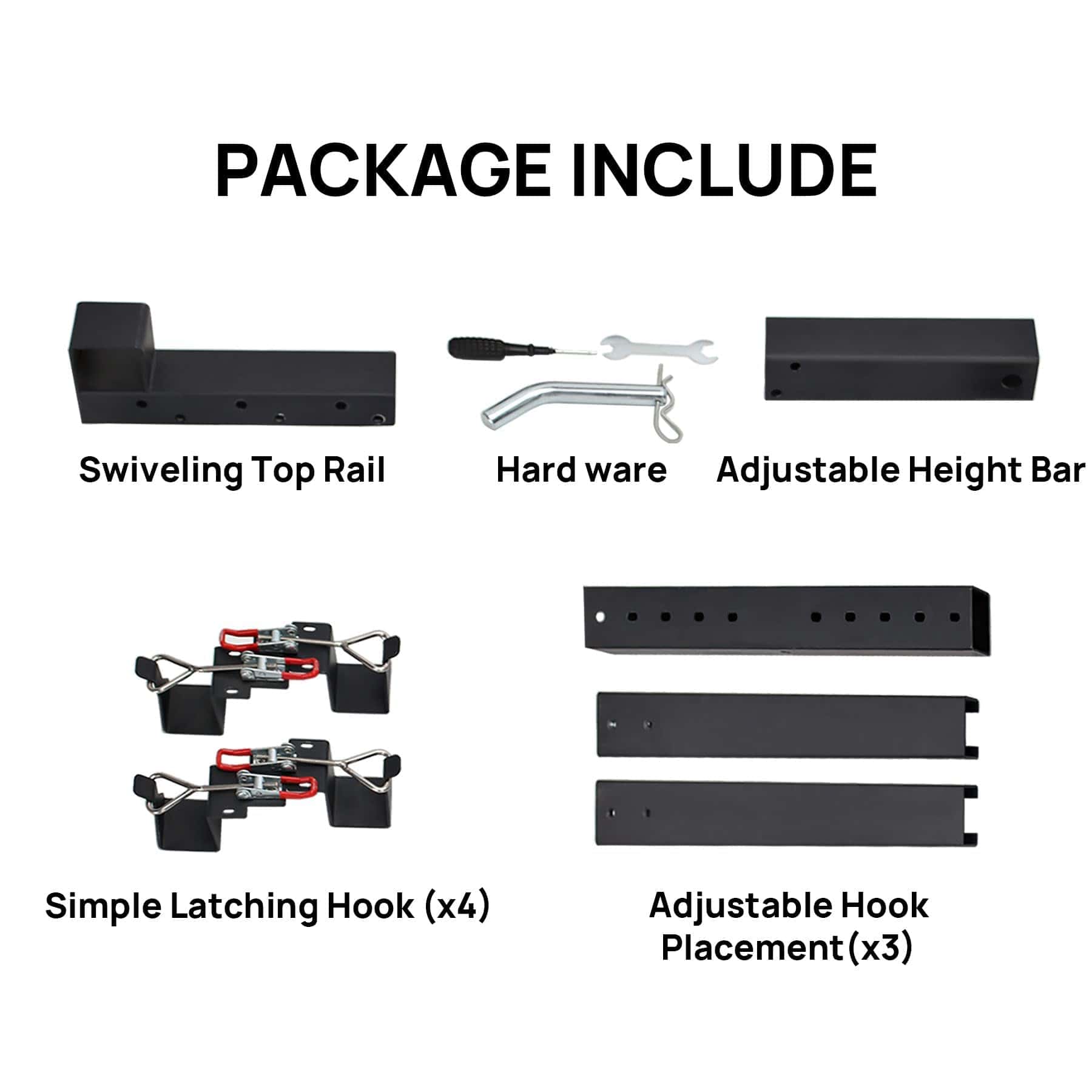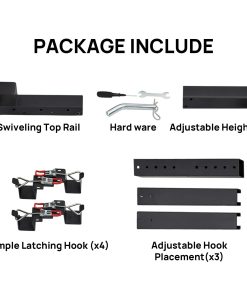 2. Construido con acero endurecido y resistente al óxido con recubrimiento en negro. Maneja cargas pesadas (hasta XX lbs) sin doblarse ni corroerse.