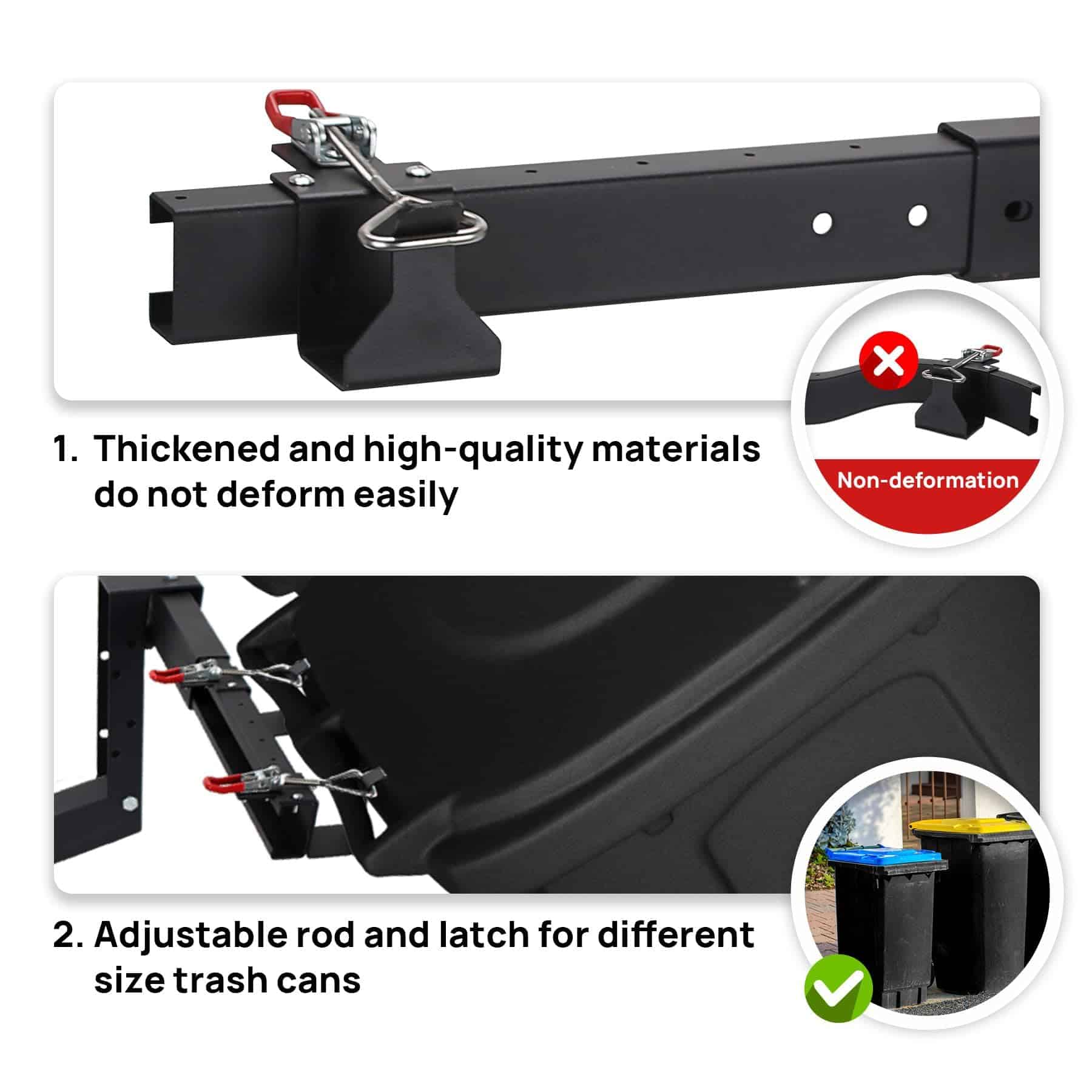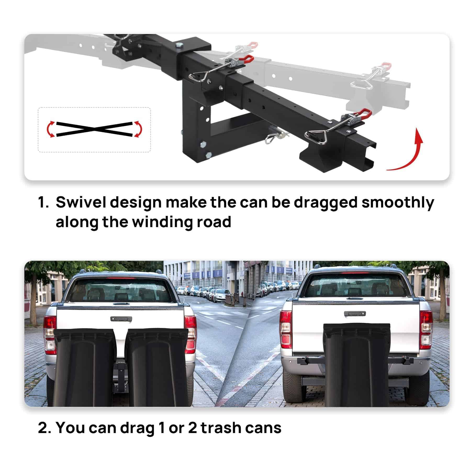 3. Se adapta a autos, camiones, ATV, UTV, carros de golf, remolques y cortadoras de césped con receptáculos estándar de 2″. Transforma cualquier vehículo en una potencia de transporte de desechos.