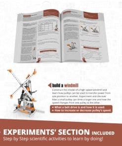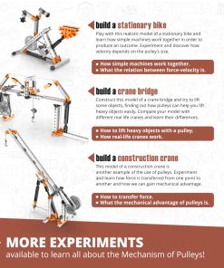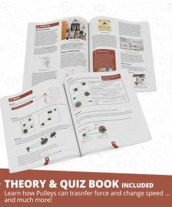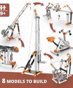 Con el conjunto de mecánica de Engino: poleas, aprende cómo las transmisiones de poleas pueden usarse para transferir fuerza con fricción reducida y cómo pueden aumentar la fuerza o la velocidad a niveles asombrosos. Las poleas se han utilizado durante miles de años y son partes esenciales de máquinas complejas en la época moderna, resolviendo muchos problemas tecnológicos. Construye 8 modelos en funcionamiento como un ascensor de material, una bicicleta estacionaria, un puente de grúa, una batidora, una grúa de construcción y un molino de viento. Encontrarás instrucciones de construcción fáciles de seguir para todos los modelos ya sea en línea o en el folleto incluido. El folleto proporciona explicaciones detalladas de los diferentes principios científicos aplicados e incorpora actividades experimentales innovadoras para un aprendizaje práctico. ¡También hay una sección de cuestionario disponible para desafiar tus conocimientos recién adquiridos! Realiza experimentos exhaustivos y descubre: – cómo funciona un sistema de polea compuesta – cómo cambiar la dirección de movimiento de un sistema de poleas – cómo afecta el tamaño de una polea a la fuerza y la velocidad.