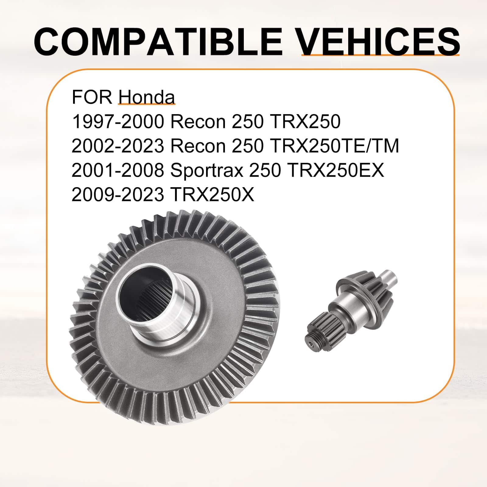 Compatible con los modelos de Honda, nuestro engranaje del anillo y piñón diferencial trasero para Honda es una actualización imprescindible para los entusiastas. Nuestro kit garantiza un rendimiento y confiabilidad óptimos para tu paseo.