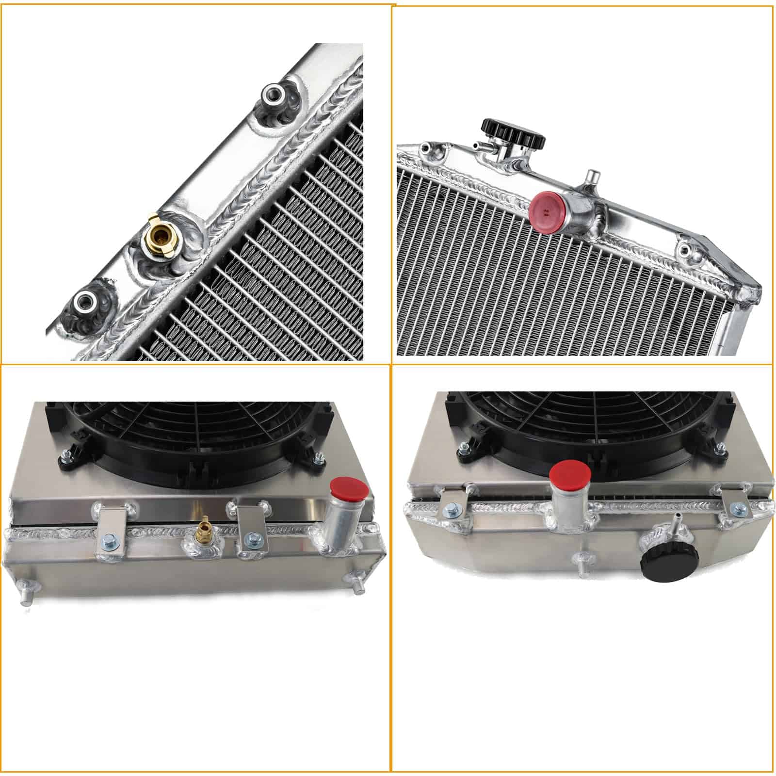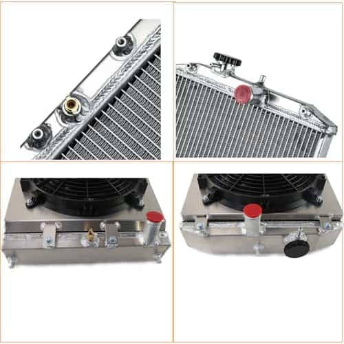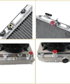 Este radiador es compatible con Honda Civic D15 D16 EK EG DEL SOL Acura Integra GS LS HX L4 L6 1993 1994 1995 1996 1997 1998 1999 2000 2001. Está construido con aluminio de grado aeronáutico AA5052 para garantizar una vida útil extremadamente duradera. El aluminio AA5052 es una aleación de Al-Mg con buena resistencia a la corrosión, excelente confiabilidad y capacidad de trabajo en frío y resistencia. El nuevo diseño del ventilador y la carcasa de aluminio AA5052 dirigen eficazmente el calor hacia afuera del compartimento del motor en lugar de empujarlo hacia la parte delantera del motor. La carcasa del ventilador básicamente alberga las aspas del ventilador asegurándolas en su lugar y evitando dañar los demás componentes del motor que puedan perturbar el funcionamiento suave y uniforme del motor. Incluye 1 x Radiador de Aluminio de 3 Filas AA5052, 1 x Tapa de Radiador Mecanizada por CNC, 1 x Carcasa de Aluminio AA5052, 2 x Ventiladores de 12″ (Incluye kits de montaje), 1 x Kit de Relé de Termostato