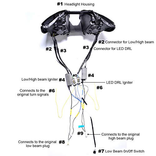 Ensamblaje de faro LED completo KT para Kawasaki Ninja ZX-10R 2011-2015. Características: Color de fibra óptica: Blanca. Temperatura de color: 6000K (color blanco de luz diurna). Aplicación: Para Kawasaki Ninja ZX-10R 2011 2012 2013 2014 2015. Garantía de un año. Lista de embalaje: 1 X Faro LED para Kawasaki Ninja ZX-10R 2011-2015, 1 X Arnés de cableado de relé (conexión al interruptor de luz alta / baja original), 1 X Manual de usuario. Observación: Este es un ensamblaje de faro listo para instalar con proyector LED ya instalado. Manejo: 2 días hábiles.
