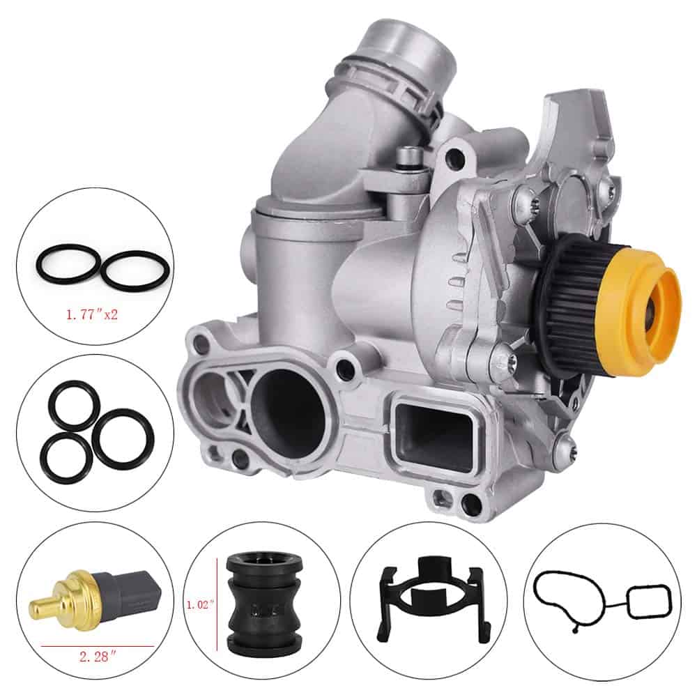 Ensamblaje de Bomba de Agua de Aluminio Compatible con Audi A3 A4 TT VW Tiguan Jetta Golf GTI Eos Beetle CC 2.0T TSI Compatibilidad: 2008-2013 Audi A3 2.0L L4 1984cc/121cid CBFA Eng. / CCTA Eng. 2009-2013 Audi A3 Quattro 2.0L L4 1984cc/121cid 2013-2016 Audi A4 2.0L L4 1984cc/121cid 2009-2012 Audi A4 2.0L L4 1984cc/121cid CAEB Eng. 2016-2013 Audi A4 Quattro 2.0L L4 1984cc/121cid 2009-2012 Audi A4 Quattro 2.0L L4 1984cc/121cid CAEB Eng. 2013-2014 Audi A5 2.0L L4 1984cc/121cid 2010-2012 Audi A5 2.0L L4 1984cc/121cid CAEB Eng. 2013-2016 Audi A5 Quattro 2.0L L4 1984cc/121cid 2010-2012 Audi A5 Quattro 2.0L L4 1984cc/121cid CAEB Eng. 2014-2015 Audi A6 2.0L L4 1984cc/121cid CAED Eng. 2012-2013 Audi A6 2.0L L4 1984cc/121cid CAEB Eng. 2013-2015 Audi A6 Quattro 2.0L L4 1984cc/121cid 2013-2016 Audi Allroad 2.0L L4 1984cc/121cid 2015-2016 Audi Q3 2.0L L4 1984cc/121cid CCTA Eng. 2015-2016 Audi Q3 Quattro 2.0L L4 1984cc/121cid CCTA Eng. 2013-2016 Audi Q5 2.0L L4 1984cc/121cid 2011-2012 Audi Q5 2.0L L4 1984cc/121cid CAEB Eng. 2009 Audi TT 2.0L L4 1984cc/121cid CCTA Eng. 2011-2015 Audi TT Quattro 2.0L L4 1984cc/121cid CETA Eng. 2009-2010 Audi TT Quattro 2.0L L4 1984cc/121cid CCTA Eng. 2012-2013 VW Beetle 2.0L L4 1984cc/121cid CCTA Eng. 2015-2016 VW CC 2.0L L4 1984cc/121cid 2010-2014 VW CC 2.0L L4 1984cc/121cid CBFA Eng. / CCTA Eng. 2012-2016 VW Eos 2.0L L4 1984cc/121cid 2009-2011 VW Eos 2.0L L4 1984cc/121cid CBFA Eng./ CCTA Eng. 2008-2014 VW GTI 2.0L L4 1984cc/121cid CCTA Eng. 2008-2011 VW GTI 2.0L L4 1984cc/121cid CBFA Eng. 2010-2013 VW Jetta 2.0L L4 1984cc/121cid CCTA Eng. 2008-2010 VW Passat 2.0L L4 1984cc/121cid CCTA Eng. 2010 VW Passat 2.0L L4 1984cc/121cid CBFA Eng. 2015-2016 VW Tiguan 2.0L L4 1984cc/121cid 2009-2014 VW Tiguan 2.0L L4 1984cc/121cid CCTA Eng.