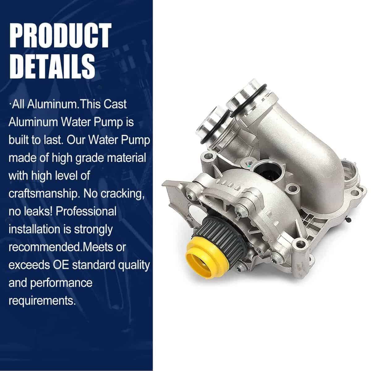 Este ensamblaje de bomba de agua eléctrica de motor de aluminio es un reemplazo de alta calidad para los modelos Audi A3 A4 A6 Q3 Q5 TT VW Tiguan Jetta Golf GTI Eos Beetle CC 2.0T TSI. Presuriza el refrigerante para garantizar su circulación en el sistema de enfriamiento, asegurando que el motor funcione a la temperatura adecuada. La pieza OE 06H121026AB viene con múltiples números de pieza de repuesto compatibles. Construido con aluminio de alta calidad, esta bomba de agua es duradera y confiable, sin grietas ni fugas. Diseñada específicamente para motores TSI, este ensamblaje incluye termostato, sensor de temperatura, junta tórica y empaquetadura para una instalación sencilla. Todos los productos han sido probados al 100% antes de la entrega, y se recomienda la instalación profesional para garantizar un funcionamiento óptimo. Si tiene alguna pregunta o problema, no dude en ponerse en contacto con nosotros para encontrar una solución.