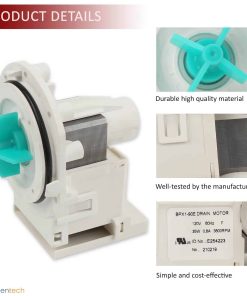 La bomba de drenaje A00126401 elimina el agua de la tina del lavavajillas durante la fase de drenaje del ciclo de lavado de platos. Esta parte de reemplazo está hecha de material duradero de alta calidad y ha sido bien probada por el fabricante para garantizar un rendimiento efectivo y duradero. Se adapta a diferentes marcas como Frigidaire, Kenmore, Crosley, Kelvinator. ¡Verifique cuidadosamente el número de modelo antes de ordenar! Si tiene alguna duda sobre la compatibilidad, puede enviarnos el número de modelo de su lavavajillas y verificaremos si se ajusta o no. Ofrecemos 30 días de devolución y cambio gratuitos, si por alguna razón no está satisfecho, puede solicitar un reemplazo o un reembolso completo.