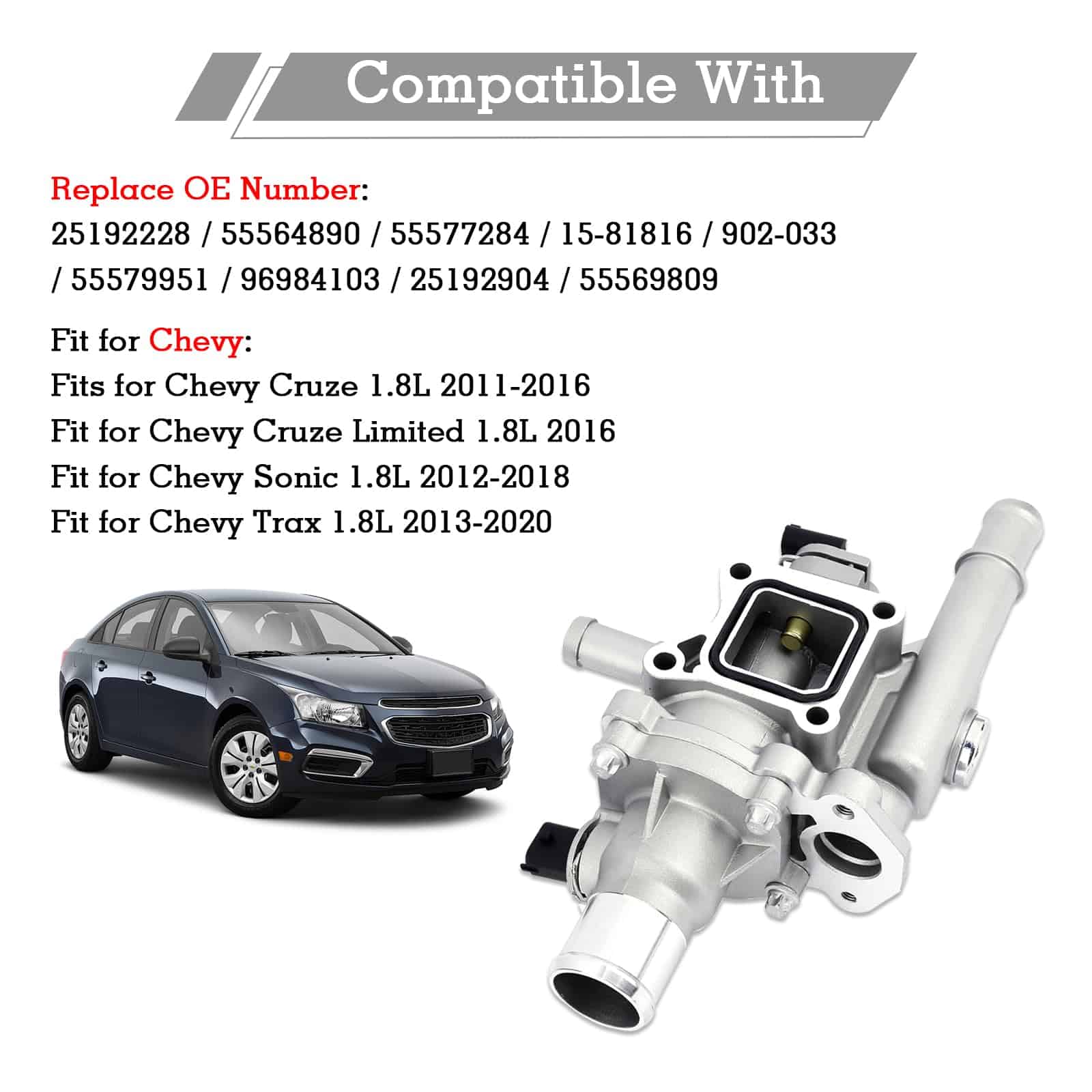 Reemplaza Números de Parte: Salida de Agua Reemplaza Parte: 25192228, 55564890, 55577284, 15-81816, 902-033, 55579951, 96984103. Tubo de Entrada de Cuerpo de Aceleración Reemplaza Parte: 25192904; 55569809.