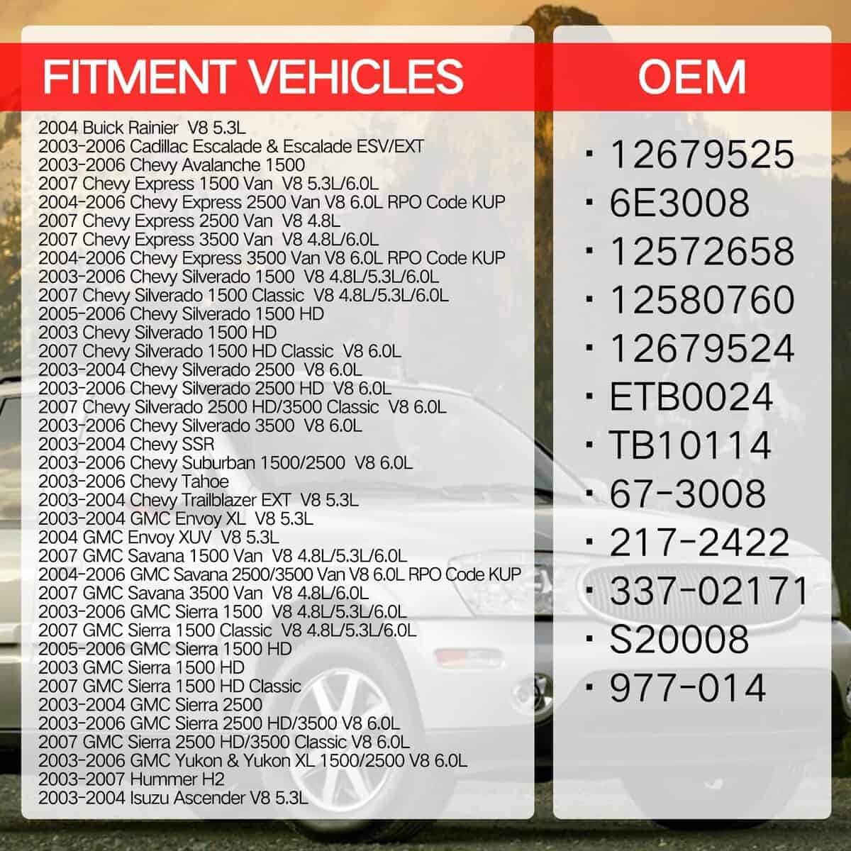 2. Número de pieza de intercambio OE: 977-000, 12570800, 12679525, 19420713, 67-3000,337-05400, 217-2293,S20006.