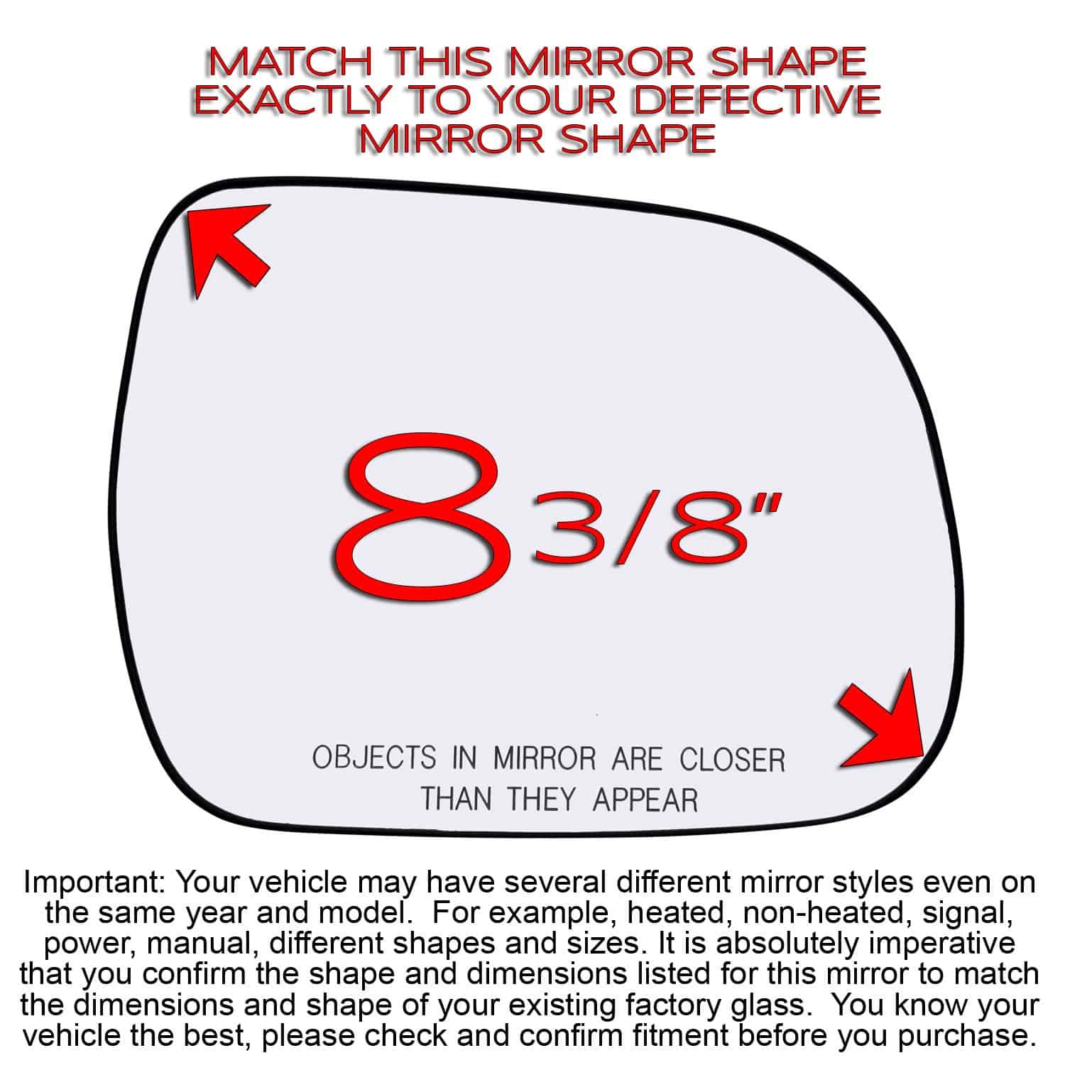 Este ensamblaje de espejo lateral del lado del pasajero es un repuesto de alta calidad para los vehículos Toyota Tacoma 2012-2015 y Highlander 2010-2013. Fabricado con una placa trasera de plástico resistente, este espejo no es calefactado y está diseñado para ofrecer un ajuste perfecto. Con medidas de 8-3/8 pulgadas de diagonal, 7-1/2 pulgadas de largo y 6 pulgadas de altura, este espejo cumple con los estándares de calidad y rendimiento. ¡Asegura un ajuste correcto para tu vehículo con este ensamblaje de espejo lateral de alta calidad!