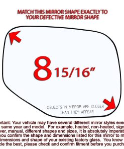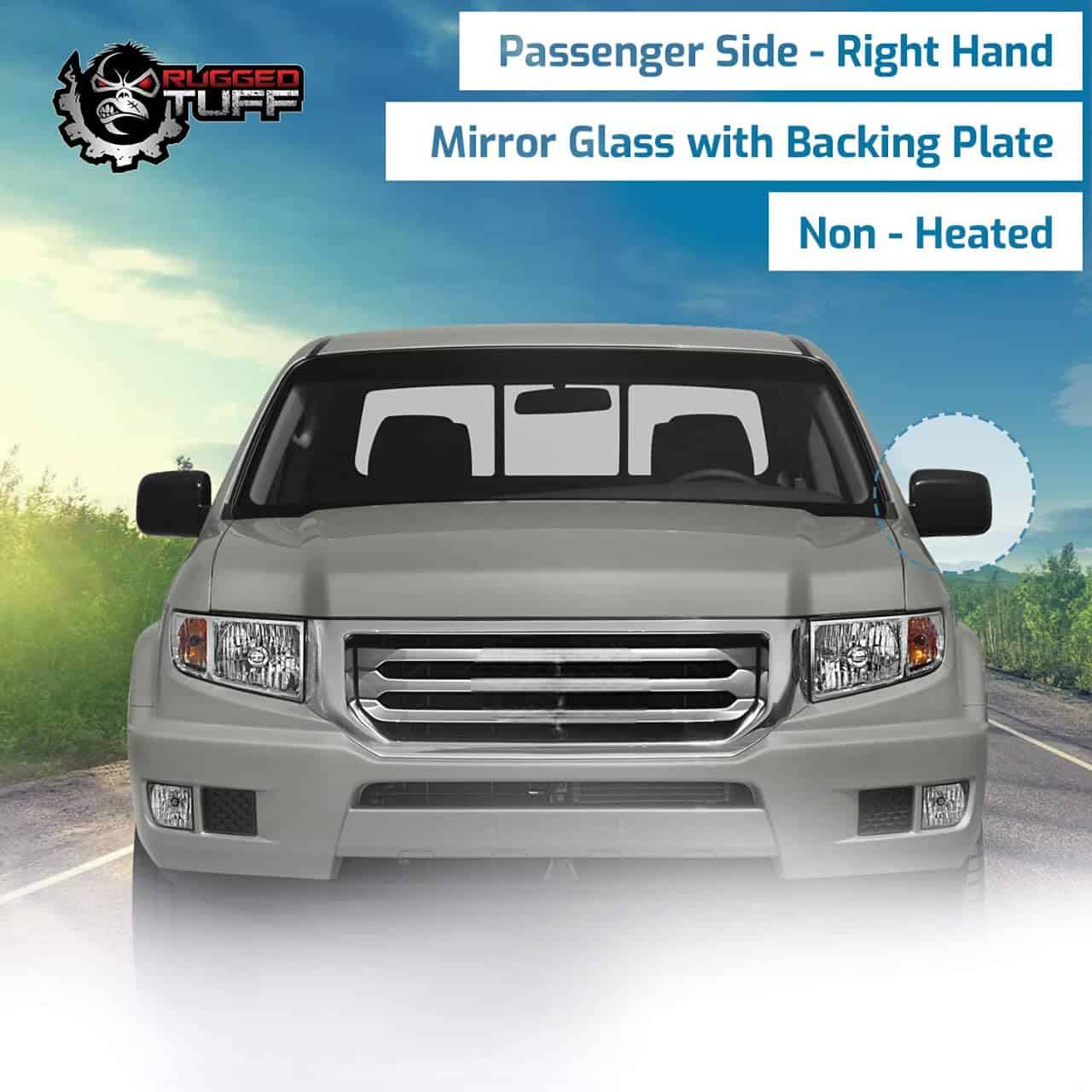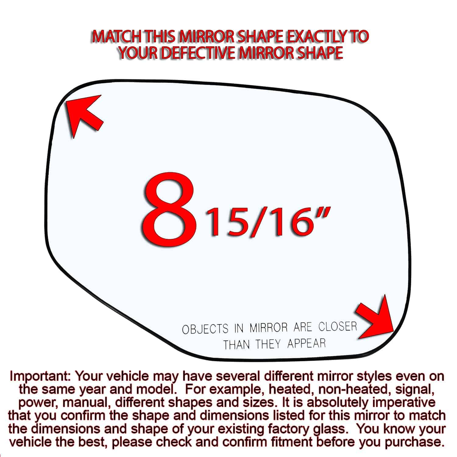 Este ensamblaje de espejo retrovisor del lado del pasajero con placa de montaje de plástico es compatible con el Honda Ridgeline 2006-2014. Tiene una medida diagonal de 8-15/16 pulgadas, longitud de 7-13/16 pulgadas y altura de 6-1/8 pulgadas. Incluye los números de parte 56375, 67486, 76203SJCA01, 76203-SJC-A01. Para asegurar un ajuste adecuado, los compradores deben verificar y emparejar la forma, las medidas y las características. Tenga en cuenta que los espejos de mercado de accesorios no son auto-difuminantes.