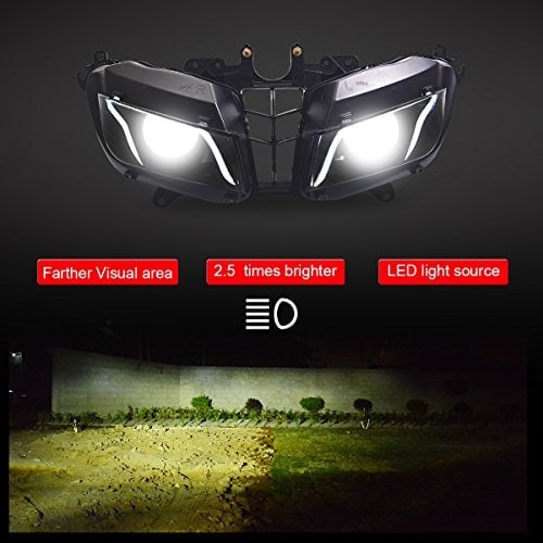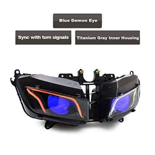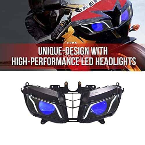 Ensamblaje completo de Faro Proyector LED para Honda CBR600RR 2013-2018 br br Color de Fibra Óptica: Blanca br Color Ojos de Demonio: Azul br br Aplicación: Para Honda CBR600RR 2013 2014 2015 2016 2017 2018 br br Garantía: Un año br br Lista de Empaque: br 1 X Carcasa de Faro para Honda CBR600RR 2013-2018 br 2 X Proyector LED con Chip LED (ambos proyectores con función de luz alta/baja preinstalada) br 2 X Fibra Óptica con encendedor br 2 X Ojos de Demonio con encendedor (opcional) br 1 X Arnés de Cableado de Relé (conectar a la batería y al interruptor original de luz alta/baja) br 1 X Manual de Usuario br br Observación: Este es un ensamblaje de faro listo para instalar con proyector LED ya instalado. br br Manejo: 5 días hábiles.