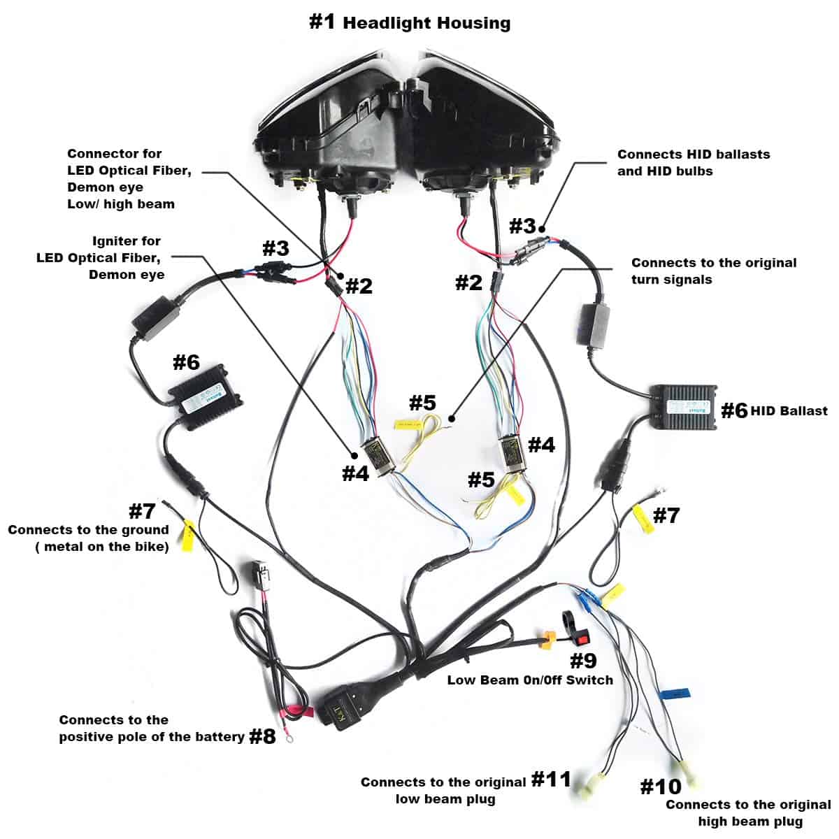Faro de Proyector HID de Fibra Óptica LED para Honda CBR600RR 2007-2012 V3. Características del artículo: Color de fibra óptica: Blanco. Color del ojo del demonio: Azul. Consumo de energía: 2 X 55W. Temperatura de color: 6000K (color blanco luz del mediodía). Aplicación: Para Honda CBR600RR 2007 2008 2009 2010 2011 2012. Garantía: Un año. Lista de empaque: 1 X Carcasa de faro para Honda CBR600RR 2007-2012. 2 X Proyector HID con bombilla HID (ambos proyectores con función de luz alta/baja preinstalados). 2 X Balasto HID extra delgado de alta calidad. 2 X Fibra óptica con encendedor. 2 X Ojo de demonio con encendedor (opcional). 1 X Arnés de cableado de relé (se conecta a la batería y al interruptor original de luz alta/baja). 1 X Manual de usuario. Observación: Este es un ensamblaje de faro listo para instalar con proyector HID ya instalado. Manejo: 5 días hábiles.