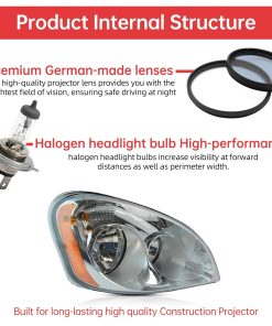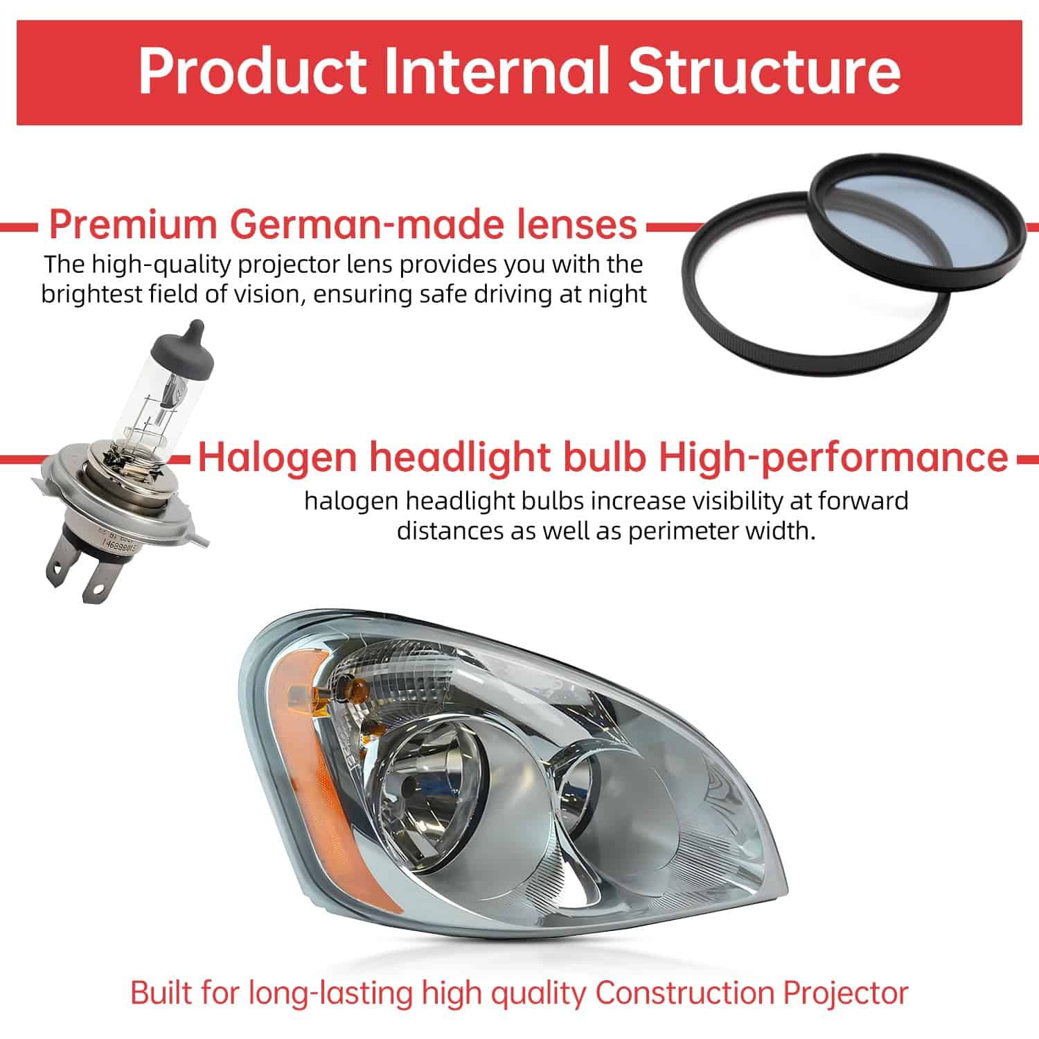 Ensamblaje de faros Compatible con Freightliner Cascadia 2008-2017, Ensamblaje del faro del lado del pasajero derecho de Freightliner Cascadia, Lente Transparente