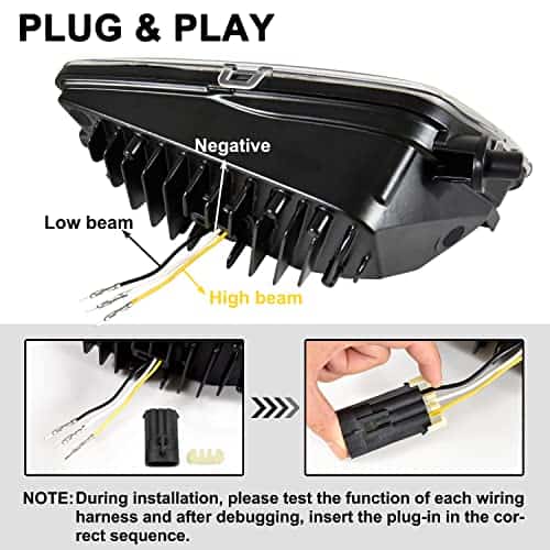 Especificaciones: Color: Negro Voltaje: 12V Lumen: 3600LM Luz Alta y 1800LM Luz Baja Resistente al agua: IP67 Tiempo de servicio: 30K horas Lista de Compatibilidad: para Pioneer 1000 (algunos necesitan modificación de enchufe) para Honda Rancher 420 2014-2019 para Honda Foreman 500 / Rubicon 2014-2019 (el Honda Rubicon 500 deluxe 2018 necesita modificación para el soporte) Incluye: 2 faros LED AVISO: 1. Si las luces LED no funcionan correctamente, cambia los cables alrededor. 2. Consulta la lista de compatibilidad en la descripción antes de hacer tu compra