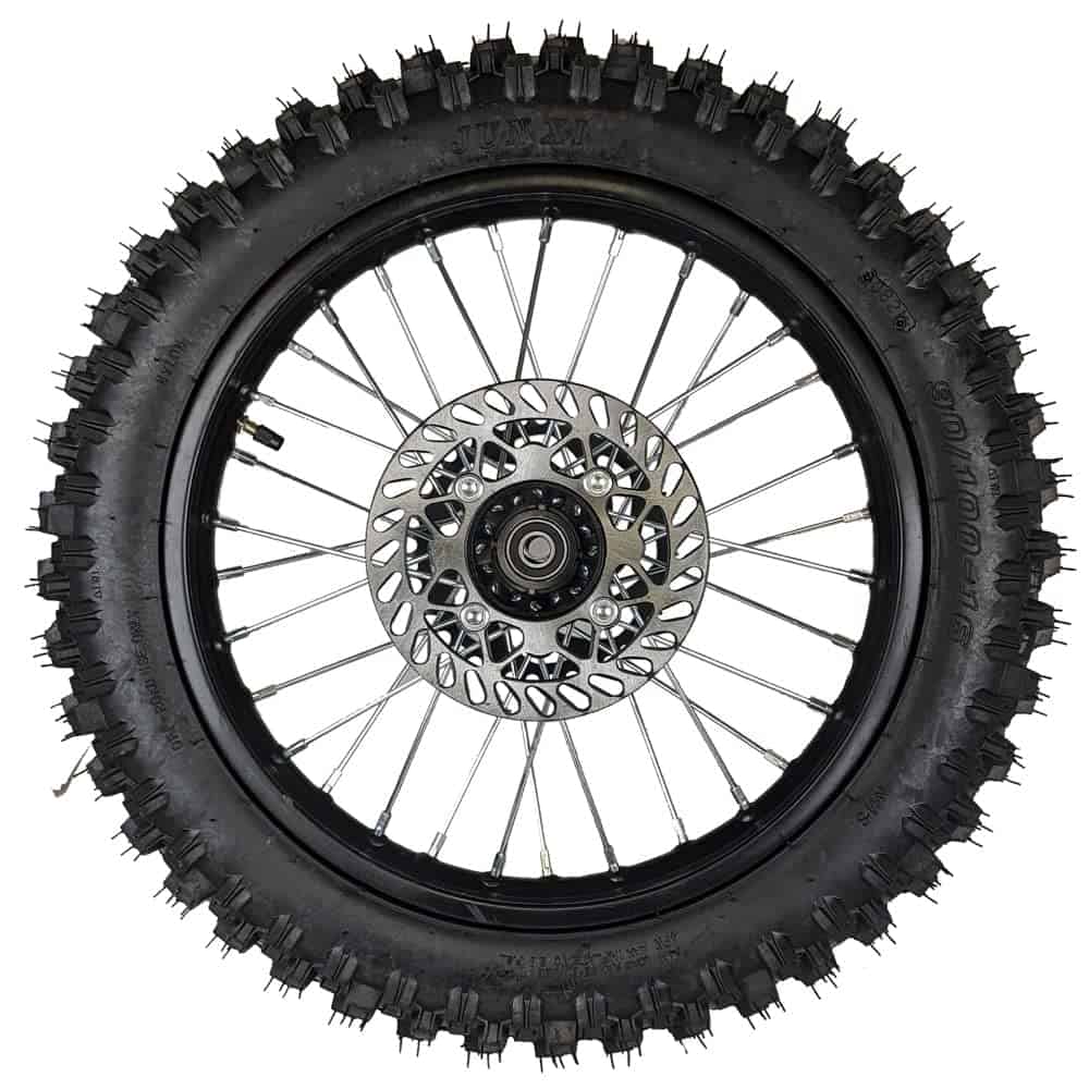 Ensamblaje completo de llanta de 16″ para motocicletas todoterreno de 110cc, 125cc. Este tamaño se usa en varios modelos y marcas, incluidas las motocicletas todoterreno Apollo más nuevas. Preste especial atención al tamaño de la perforación del eje. Por favor, utilice medidas detalladas e imágenes para asegurarse de que obtenga la llanta correcta para su máquina.