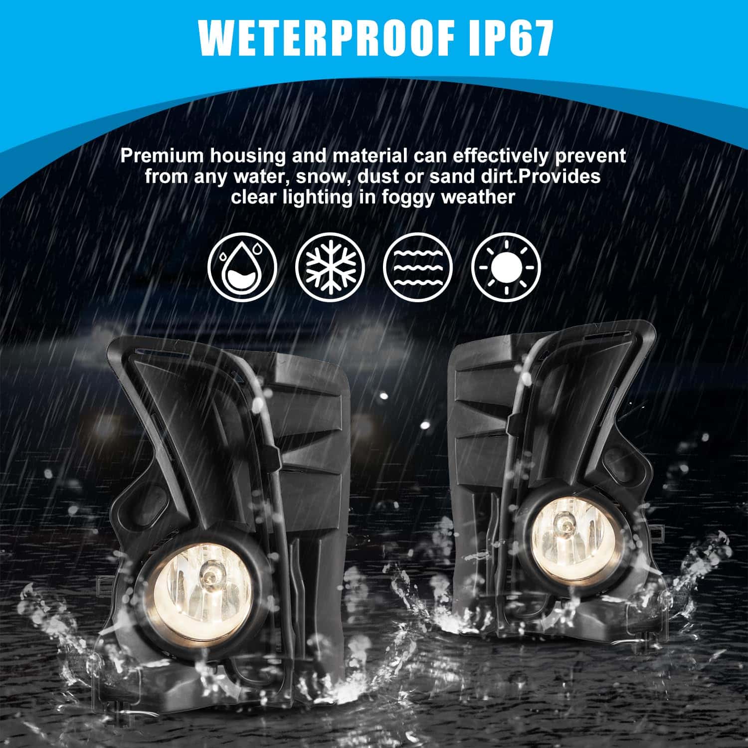 Super Impermeable: La carcasa duradera diseñada con sellante previene la humedad, el polvo y la arena que caen dentro de la luz de niebla.