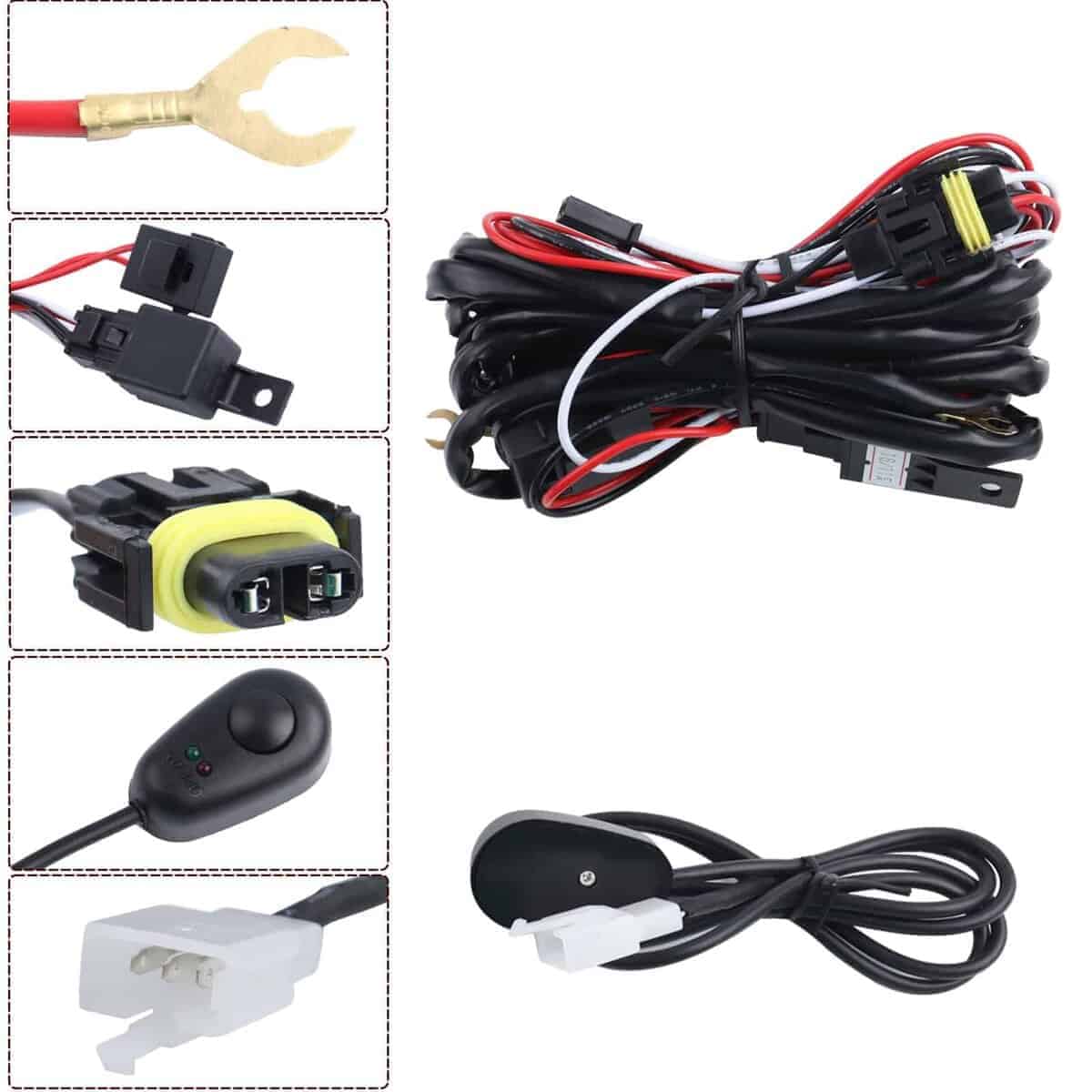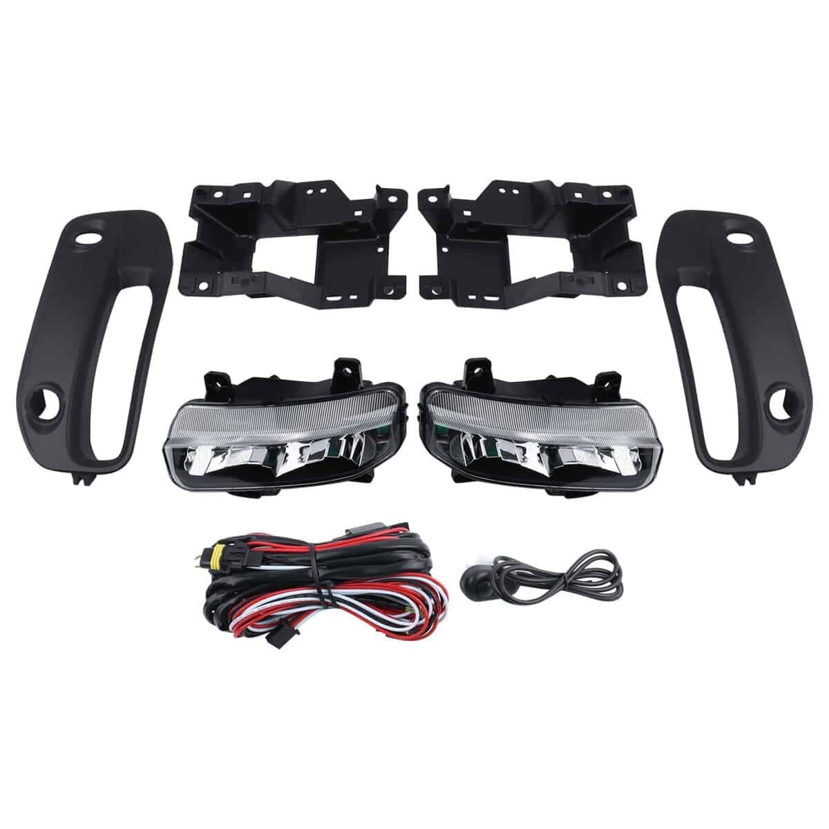 Incluye soportes para luces de niebla, arnés de cableado, interruptor y tornillos, permitiendo una instalación rápida y sin complicaciones sin necesidad de modificaciones.