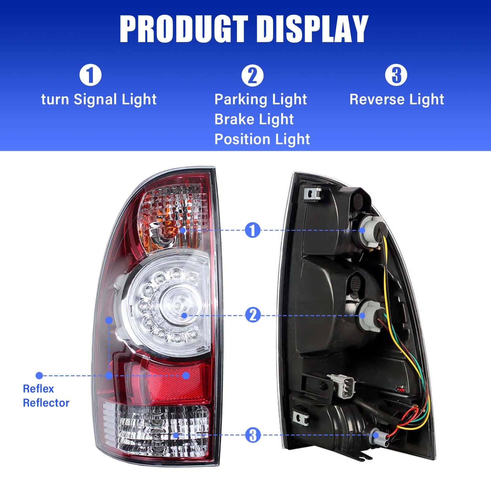 2. Cumplimiento con DOT Para garantizar la seguridad durante la conducción tanto para usted como para las circunstancias de conducción entrantes, nuestras luces traseras Toyota Tacoma 2005-2015 cumplen con los estándares DOT y SAE. La luz trasera mejorará su iluminación, haciendo que su vehículo sea más fácil de ver para otros conductores y pasajeros.