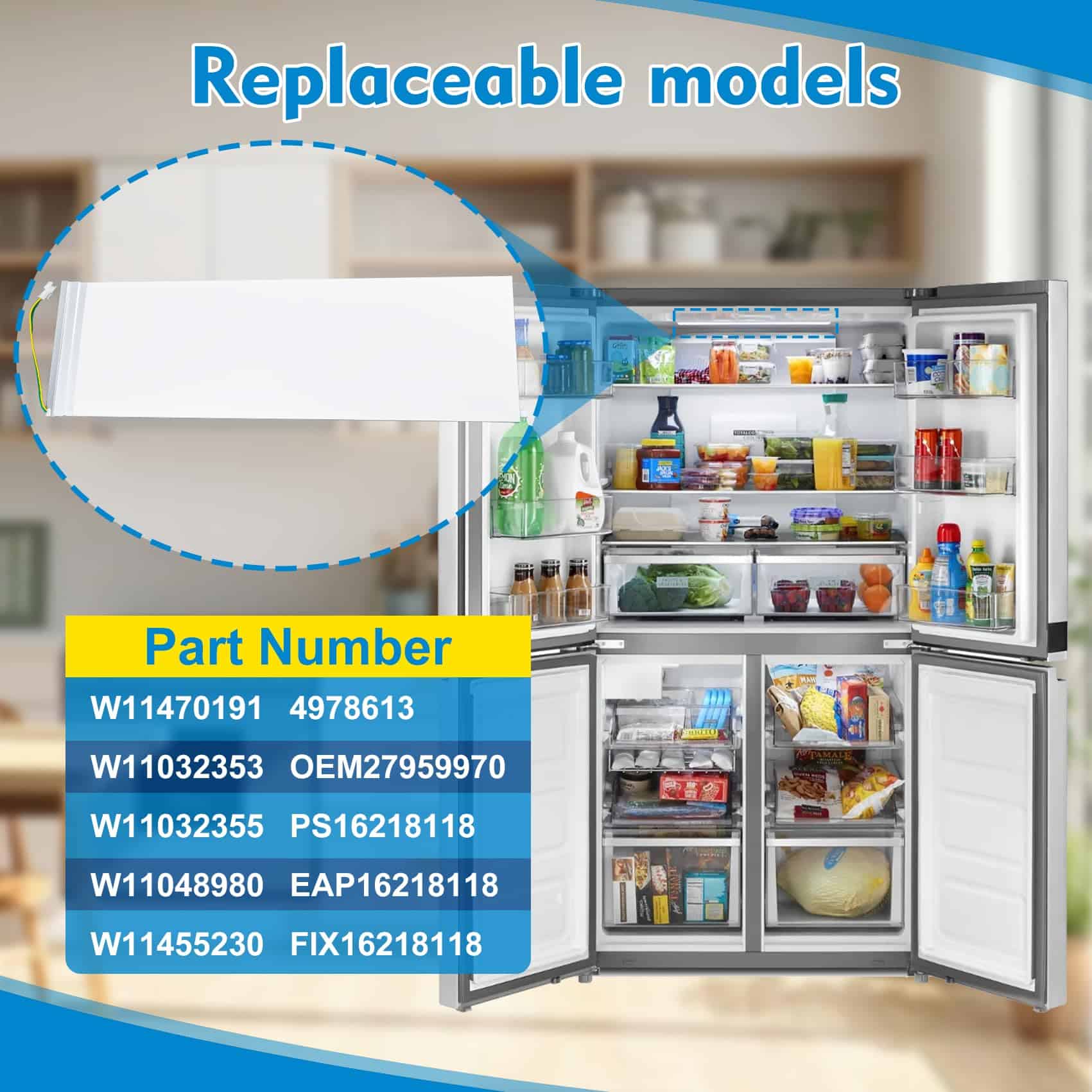 Ensamblaje de luz LED para refrigerador W11048980 W11470191