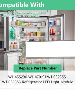 Ensamblaje de luz LED W11048980 W11470191 para refrigerador Whirlpool compatible con WRQA59CNKZ, reemplaza la luz del refrigerador LED W11455230 W11032355 W11032353. Este ensamblaje de luz LED está diseñado específicamente para refrigeradores de montaje inferior Whirlpool como el modelo WRQA59CNKZ, garantizando un ajuste perfecto e integración sin problemas. Reemplaza varios números de parte, incluyendo W11470191, W11455230, W11032355 y W11032353, lo que lo convierte en una solución versátil para varios modelos de refrigerador Whirlpool. Fabricado con materiales superiores, este ensamblaje de luz LED ofrece máxima durabilidad y vida útil. Actualice la iluminación de su refrigerador hoy y disfrute de una experiencia más brillante, eficiente y fácil de usar. Confíe en nuestro reemplazo de módulo de luz LED premium para un rendimiento confiable y duradero. Las luces LED brillantes y eficientes iluminan cada rincón de su refrigerador, facilitando encontrar lo que necesita. La instalación es fácil y sencilla, sin ranuras u aberturas visibles en el marco. Utilice un destornillador plano delgado o palancas de plástico para quitar cuidadosamente el marco. La cubierta transparente está asegurada con dos cierres, garantizando un proceso de instalación seguro pero sencillo.