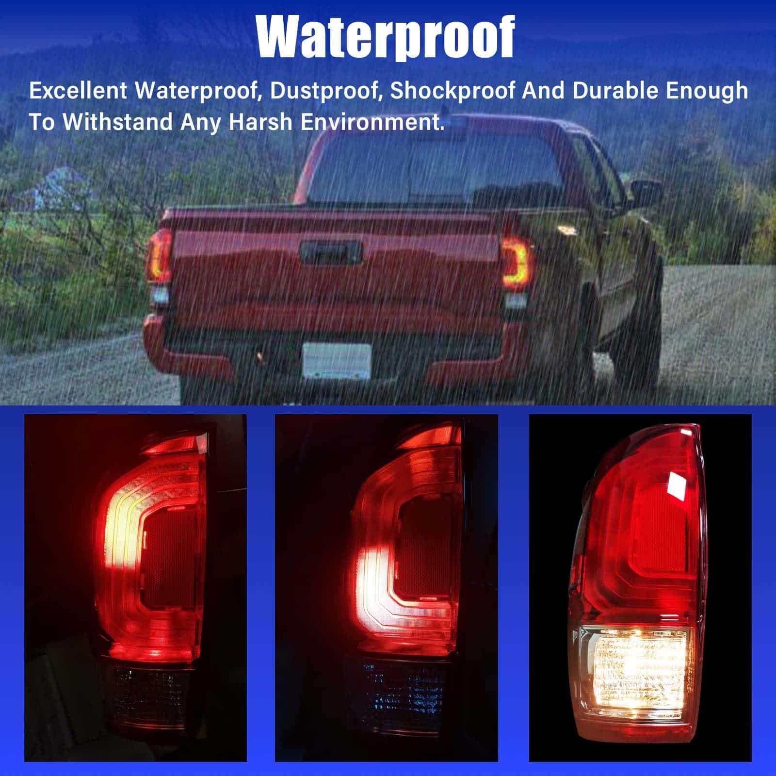 2. Cumplimiento DOT Para garantizar la seguridad al conducir para usted y las circunstancias de conducción que se aproximan, nuestras luces traseras para Toyota Tacoma 2016-2022 cumplen con las normas DOT y SAE. La luz trasera mejorará su iluminación, haciendo que su vehículo sea más fácil de ver para otros conductores y pasajeros.