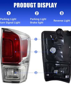 2. Cumplimiento DOT Para garantizar la seguridad al conducir tanto para usted como para las circunstancias en movimiento, nuestras luces traseras Toyota Tacoma 2005-2015 cumplen con DOT y SAE. La luz trasera mejorará su iluminación, haciendo que su vehículo sea más fácil de ver para otros conductores y pasajeros.