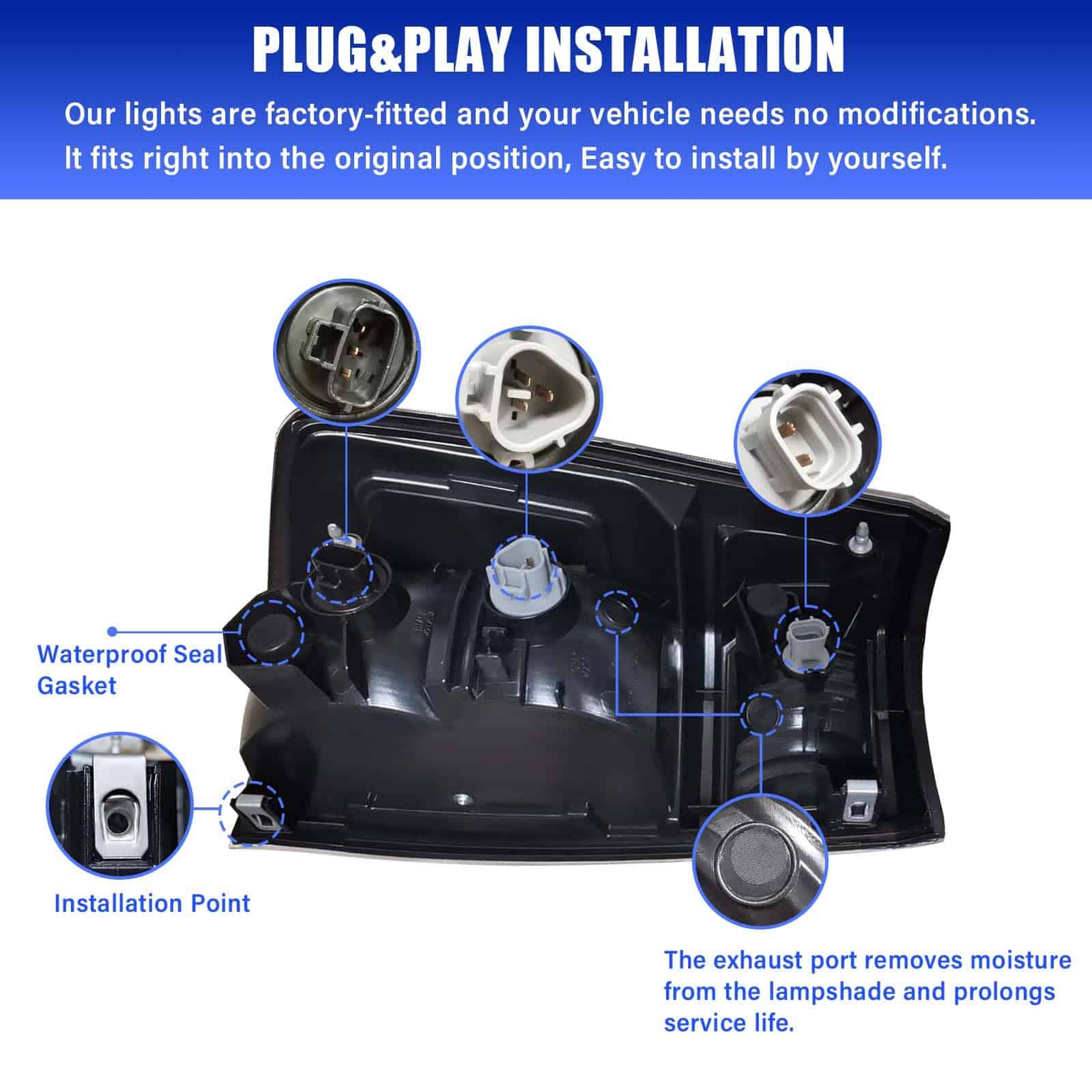 4. Instalación fácil Operación plug-n-play, no requiere modificación ni perforación, reemplazo directo. Con su montaje OE de perno directo, puede completar la instalación fácilmente y rápidamente en 20 minutos, sin necesidad de asistencia profesional.