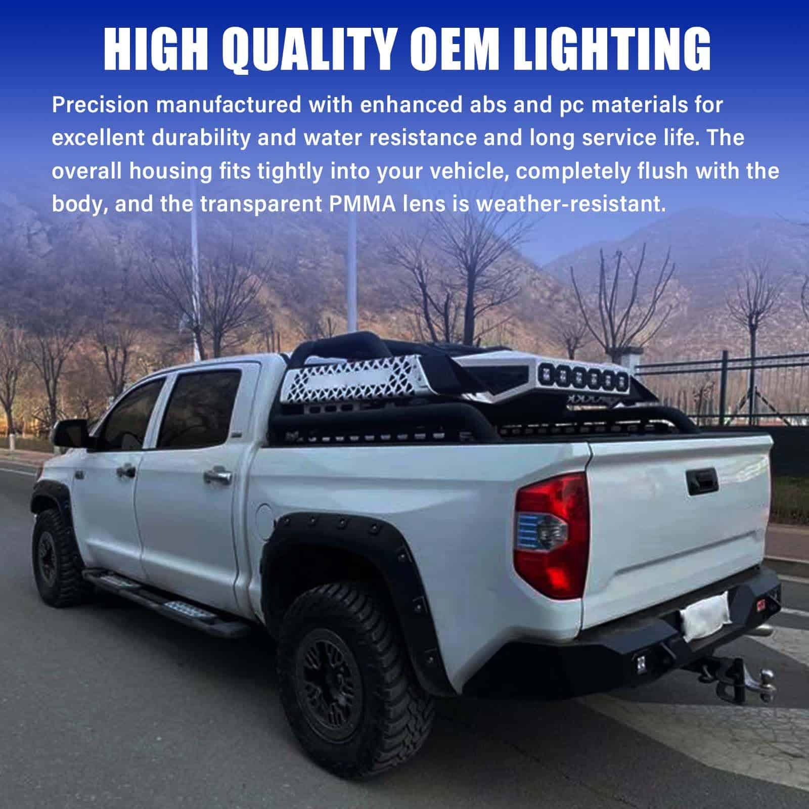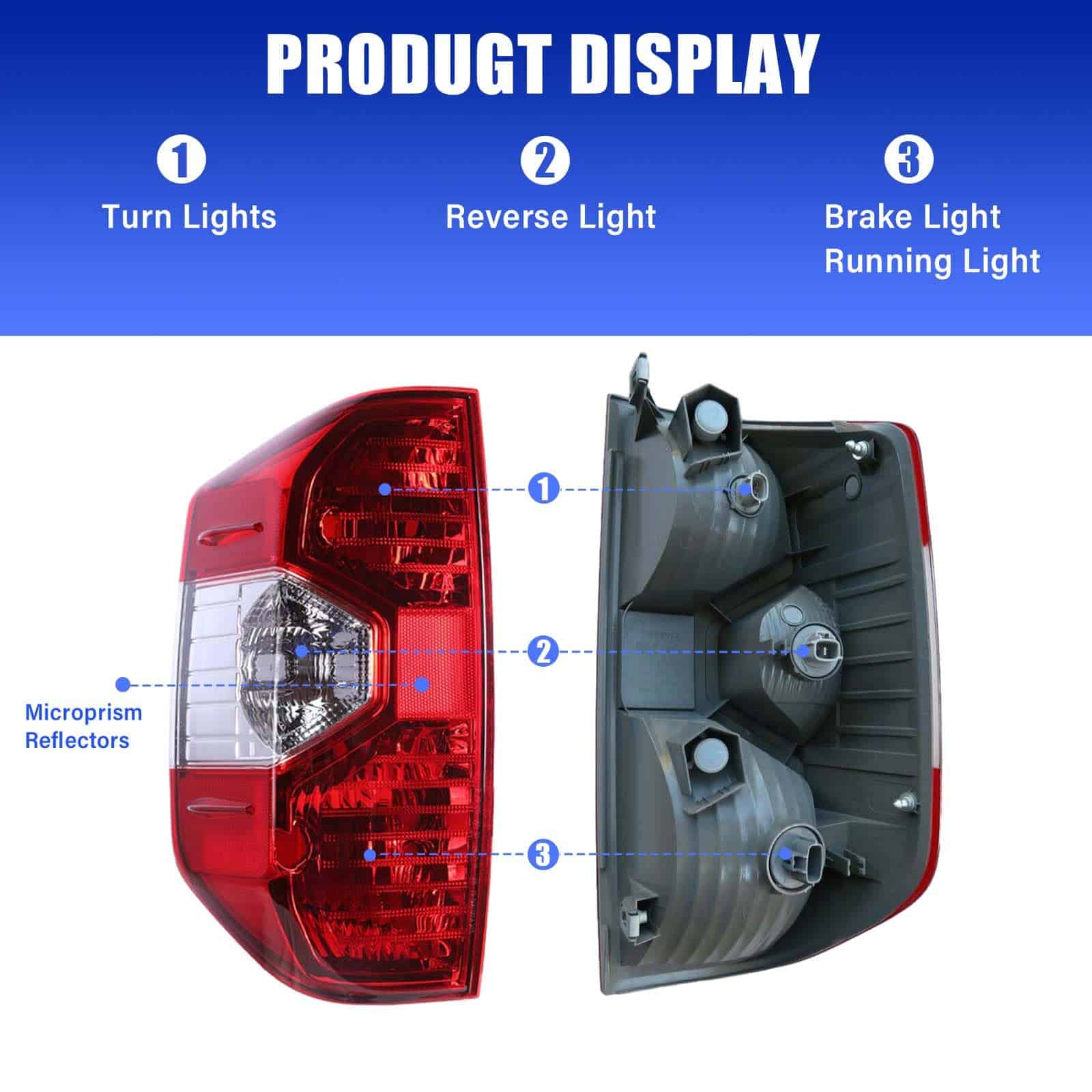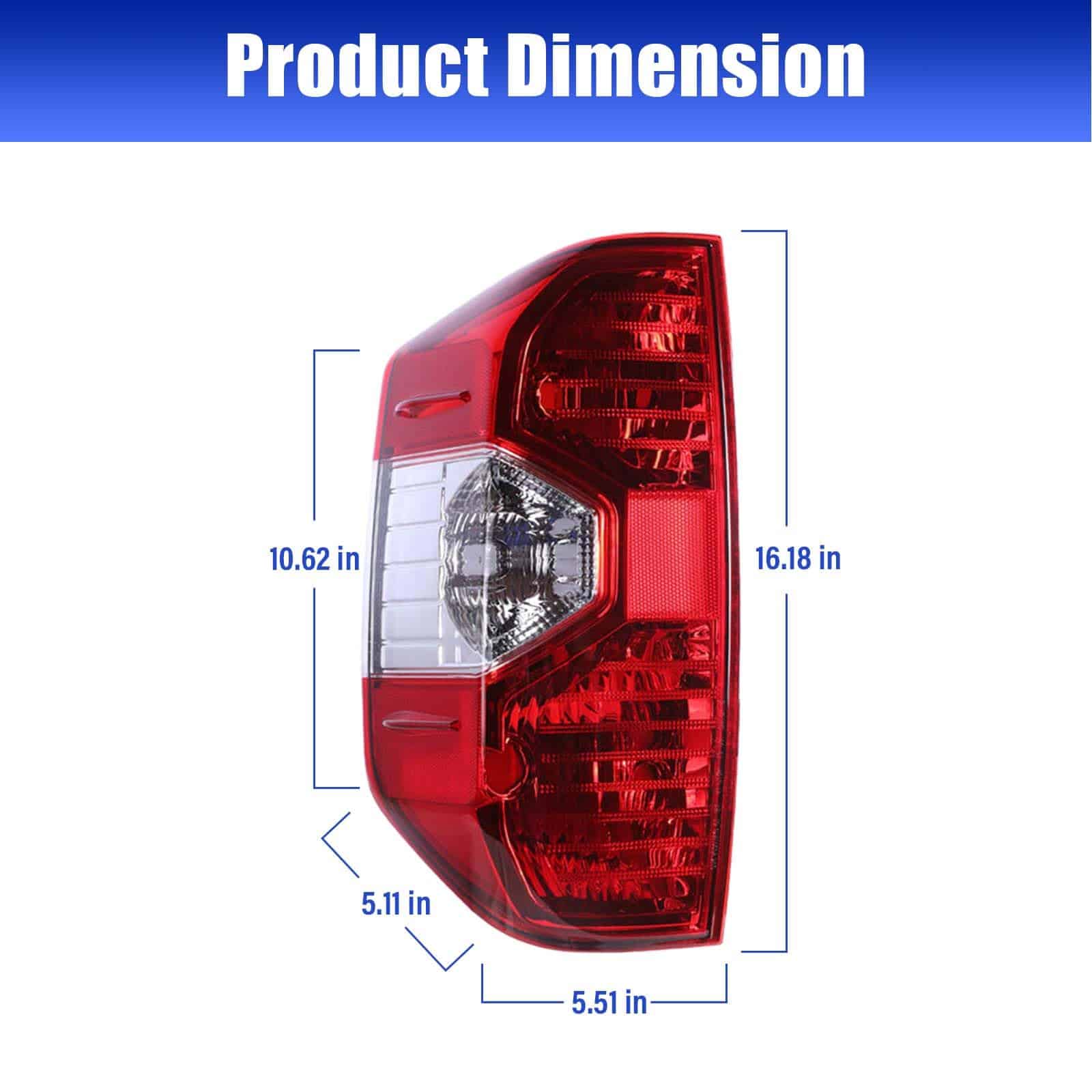 1. COMPATIBILIDAD Ensamblaje de luz trasera compatible para Toyota Tundra 2014 2015 2016 2017 2018 2019 2020 2021 2022, Reemplaza OE: 815500C10014, 815500C10015, 815500C10016, 815500C10017, 815500C10018, 815500C10019, TO2800193, TO2801193.