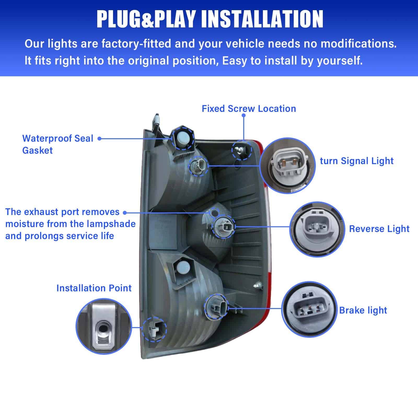 2. Cumplimiento con DOT Para garantizar la seguridad al conducir para ti y para las circunstancias de conducción que vienen en dirección contraria, nuestras luces traseras Toyota Tundra 2014 – 2021 cumplen con DOT y SAE. Las luces traseras mejorarán tu iluminación, haciendo que tu vehículo sea más fácil de ver para otros conductores y pasajeros.