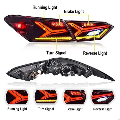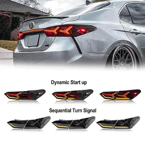 Característica: Luces traseras aftermarket izquierda y derecha específicas para Toyota Camry XV70 8ª generación 2018-2023 SE XSE LE XLE TRD. Una excelente manera de elevar la apariencia del exterior de tu automóvil. Luces led súper brillantes, mejoran la seguridad al conducir. Duraderas y de larga vida útil. Plug and play, no se necesita modificación. Impermeables y resistentes al polvo. Cumple con las regulaciones en los EE. UU. Especificaciones: Fuente de luz: LED Color de la carcasa: Lente ahumado Material: ABS + PMMA + Aluminio Tasa de impermeabilidad: IP68 Garantía: Un año Paquete incluye: Un par de luces traseras
