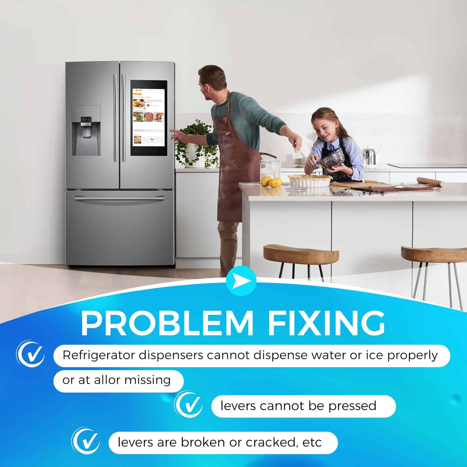 La palanca de dispensador de refrigerador MOOTVGOO DA97-11867A es una excelente opción de reemplazo para los refrigeradores Samsung de los modelos RF25, RF263, RF4267, RFG296, RFG297, RFG29, RSG307 y RSG309. Este ensamblaje de palanca de dispensador está diseñado para liberar hielo o agua cuando se presiona la palanca. Fabricado con material de calidad y probado por el fabricante para cumplir con el estándar OEM, ofrece un rendimiento confiable en la dispensación de agua y hielo. La palanca viene con una placa de cubierta con un film protector que se puede quitar durante la instalación. Es importante reemplazar la palanca del dispensador si experimenta problemas como la incapacidad de dispensar adecuadamente agua o hielo, palancas rotas o agrietadas, entre otros. El paquete incluye una palanca de plástico gris y una placa de cubierta; sin embargo, tenga en cuenta que no incluye un resorte, por lo que se recomienda conservar el resorte anterior como repuesto. Para cualquier consulta sobre el producto, no dude en ponerse en contacto con nosotros y le atenderemos lo antes posible.