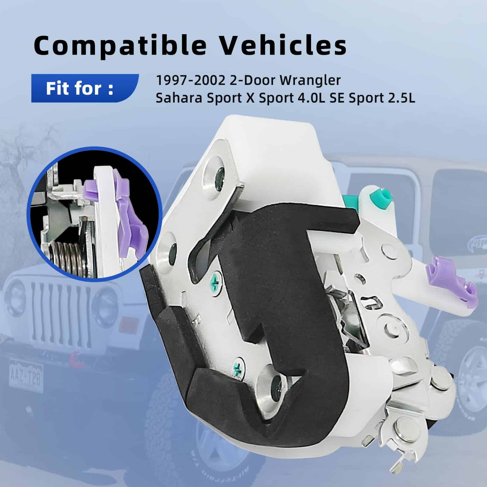 1. Compatibilidad Compatible con 1997-2002 Wrangler Sahara Sport X Sport 4.0L y SE Sport 2.5L de 2 puertas.