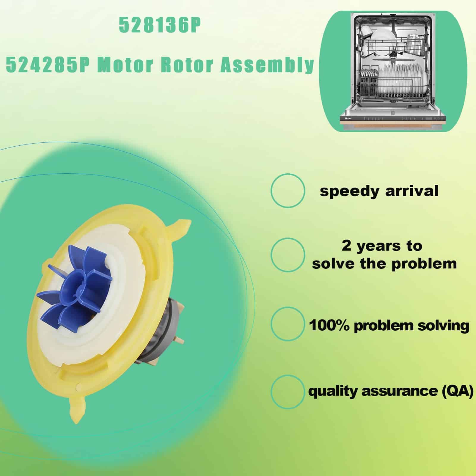Este ensamblaje es compatible con los modelos de lavavajillas Fisher & Paykel: DD605, DD60D, DS605, DD60S, DD224, DD24S, DD24D y DDSDF. Asegúrese de que su modelo de lavavajillas sea compatible antes de realizar la compra. En caso de encontrar cualquier problema, nuestro equipo responderá y resolverá sus inquietudes dentro de las 24 horas. Ofrecemos asistencia posventa para cualquier defecto de diseño, material, fabricación o ensamblaje que pueda afectar el rendimiento del producto. Con una garantía de satisfacción de 2 años, puede estar seguro de que su lavavajillas seguirá funcionando eficientemente con el ensamblaje de rotor de motor 524285P.