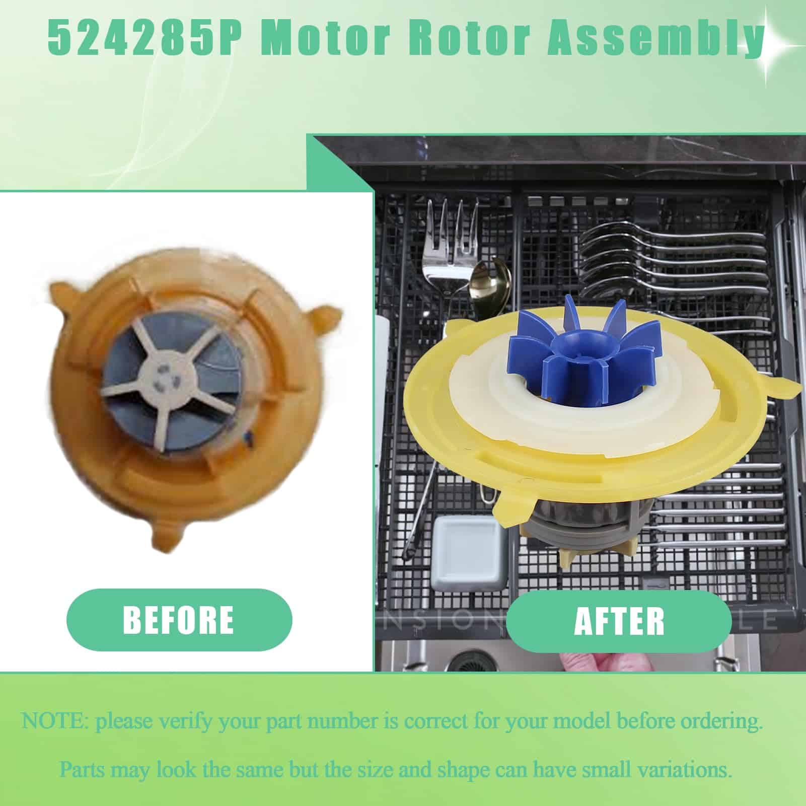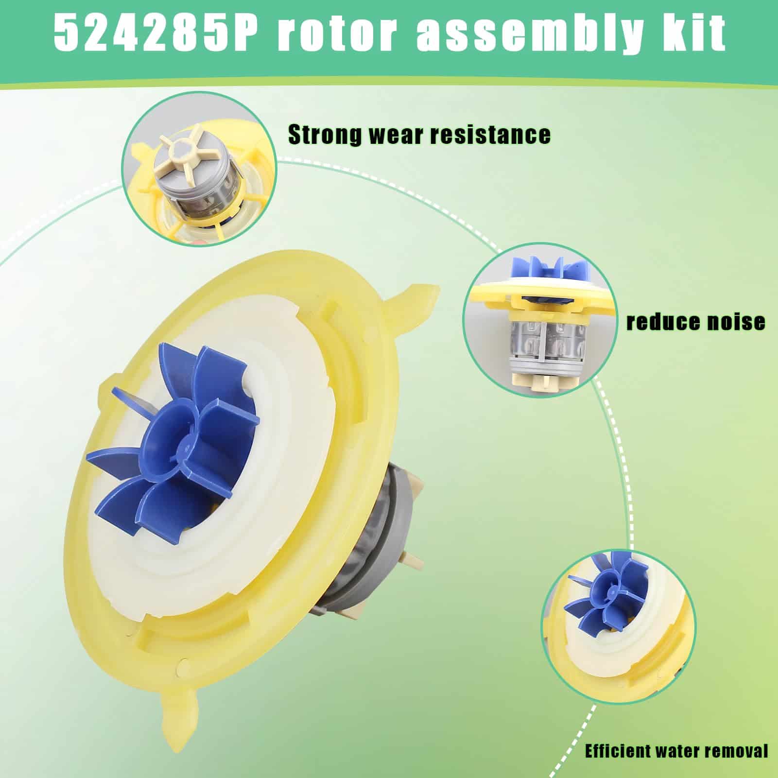 El motor del rotor 524285P está hecho de material ABS de alta calidad, que proporciona una excelente resistencia al impacto y puede soportar el desgaste y la presión del uso diario, lo que prolonga la vida útil del producto. Posee una fuerte resistencia a la corrosión por agua y detergentes, lo que lo hace muy adecuado para el entorno húmedo de los lavavajillas, evitando la degradación del rendimiento o los daños causados por la corrosión. Además, cuenta con un buen rendimiento de aislamiento que previene eficazmente los cortocircuitos.