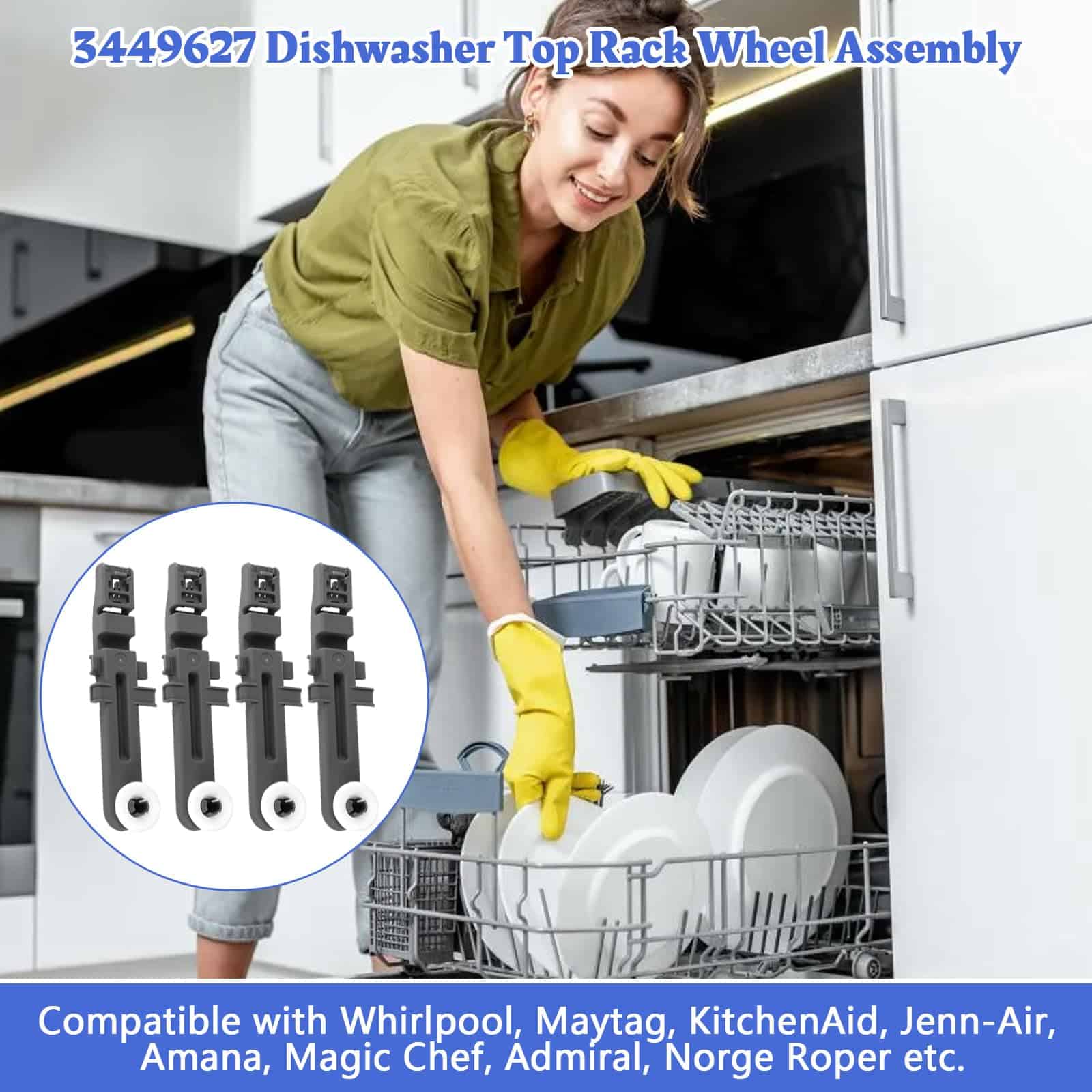 5. FÁCIL INSTALACIÓN: El ensamblaje de rueda superior del lavavajillas 3449627 se instala fácil y eficientemente, puedes hacerlo tú mismo después de consultar algunos videos en Youtube, asegúrate de desconectar la fuente de alimentación y agua de la unidad antes de realizar el mantenimiento. El ajustador del bastidor superior del lavavajillas es una forma económica de reparar tu lavavajillas que es tanto práctica como asequible.