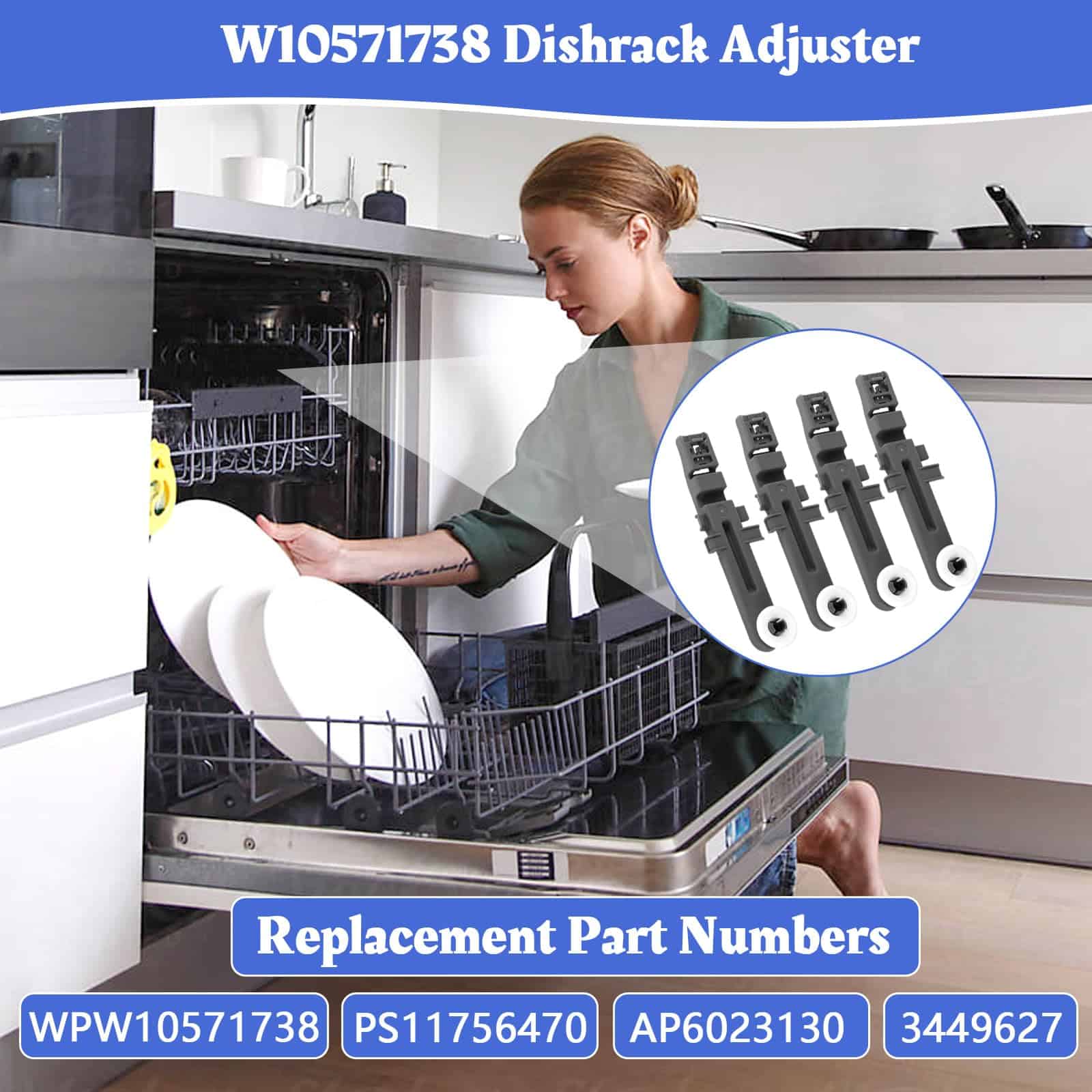 3. MARCA COMPATIBLE: El ajustador del bastidor W10571738 es adecuado para la mayoría de las marcas principales de electrodomésticos, compatible con Whirlpool, Maytag, KitchenAid, Jenn-Air, Amana, Magic Chef, Admiral, Norge Roper, etc.