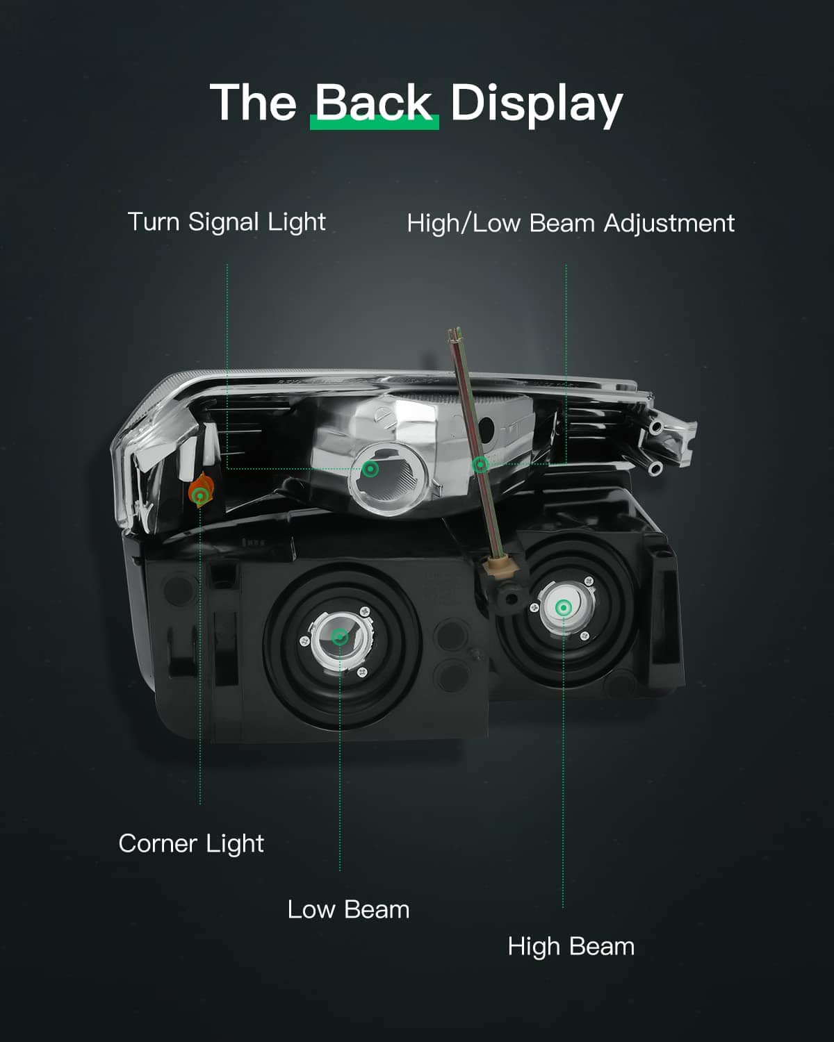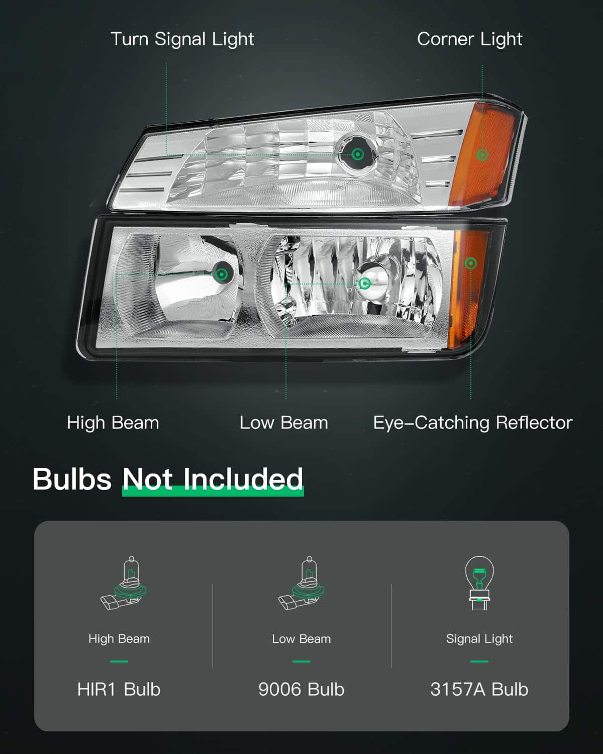 2. Ajuste Directo – Tipo de fuente de luz: Alto haz: HIR1 / Bajo haz: 9006 / Señal de giro: 3157A Instalación plug-and-play. No son necesarias modificaciones, reemplazo directo para faros de fábrica.