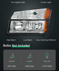 1. Compatible Con – Faros con Carcasa cromada Reflector ámbar Lente clara para Chevrolet Avalanche 1500 4 puertas 2002 2003 2004 2005 2006, Para Chevrolet Avalanche 2500 4 puertas 2002 2003 2004 2005 2006 OEM: GM2520184 GM2521184.