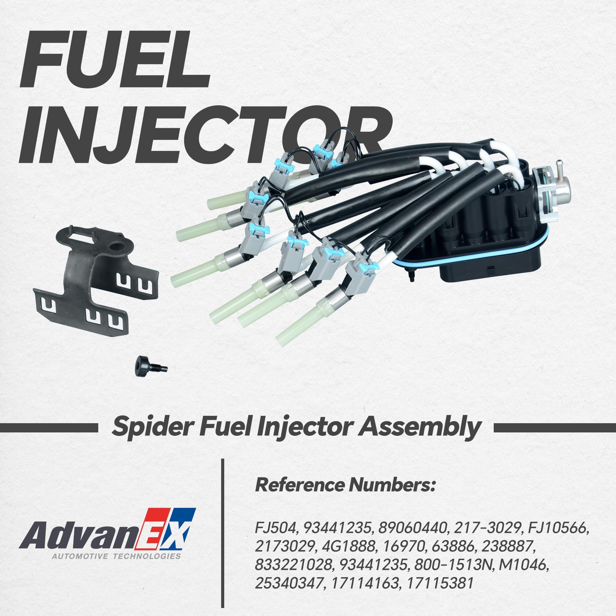 Ensamblaje del Inyector de Combustible AdvanEX FJ504 con Soporte, diseñado para ser compatible con una variedad de modelos de vehículos V8. Este producto ha sido sometido a rigurosos controles de calidad para garantizar su funcionamiento óptimo. Su diseño en forma de araña permite una entrega eficiente de combustible al cilindro, lo que puede ayudar a mejorar la eficiencia de combustible y el control de emisiones en el vehículo. Además, ofrecemos un servicio postventa de un año para brindar una experiencia de compra satisfactoria. Si tiene alguna pregunta, no dude en contactarnos para recibir una respuesta satisfactoria.