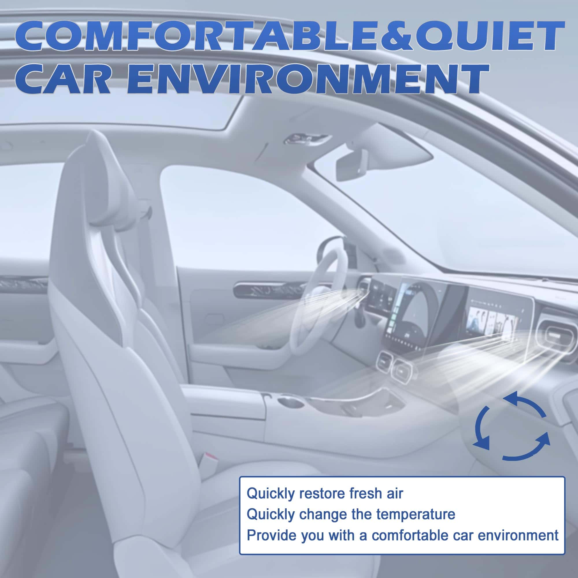 3. Bajo Ruido El ensamblaje del motor del soplador de aire acondicionado adoptó una carcasa de jaula integrada y un motor actualizado con velocidad del ventilador ajustable para una experiencia de conducción tranquila y cómoda: 52db en bajo y 65db en Alta. asegurando un funcionamiento silencioso y una mayor comodidad al conducir en la carretera.