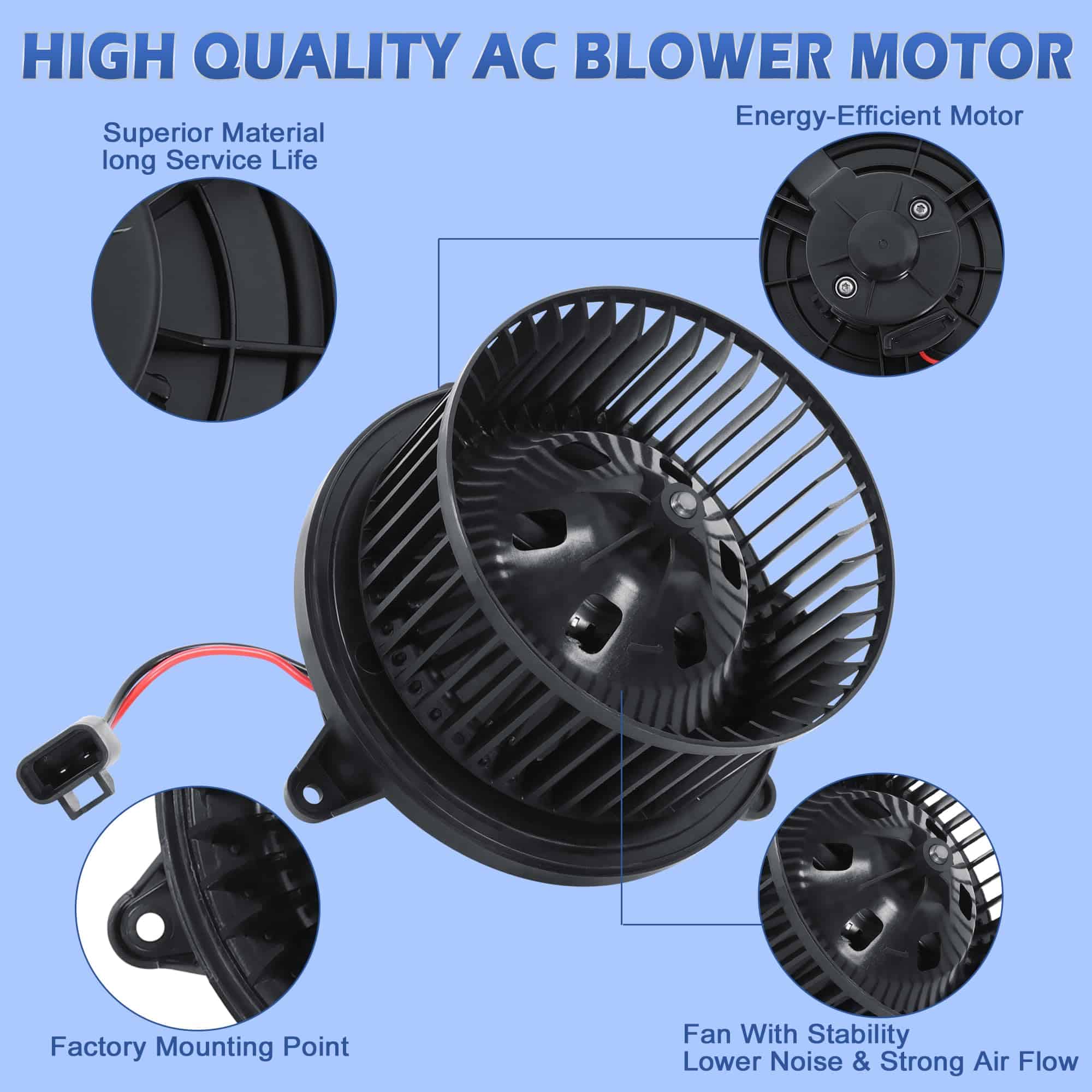 5. Instalación Fácil Reemplazo directo de la Asamblea del Ventilador del Motor del Soplador de Aire sin modificaciones. No se requieren herramientas especiales, y el motor del soplador se instala fácilmente al quitar unos tornillos en el lado del pasajero del vehículo debajo de la guantera.