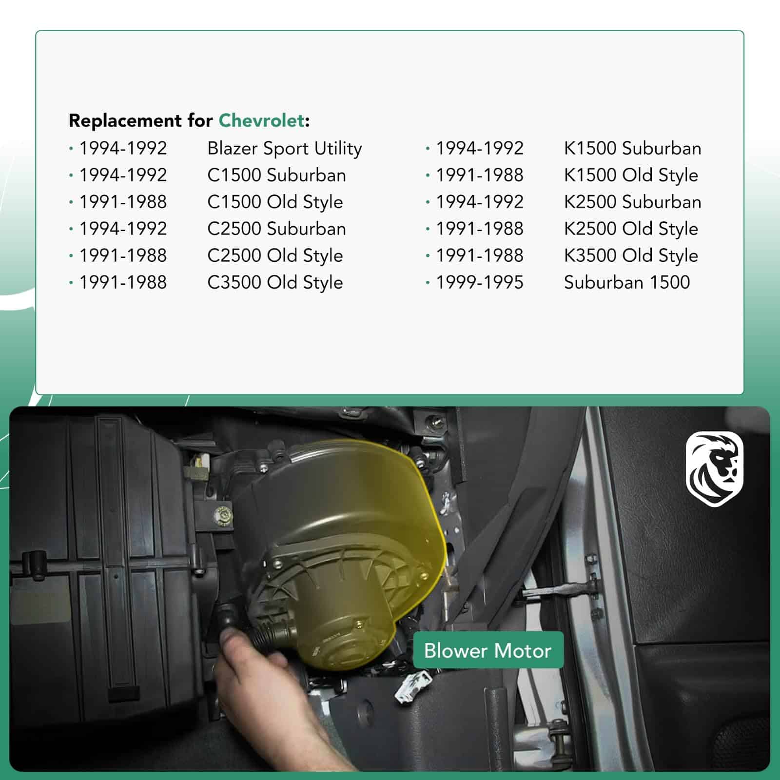 1. Se adapta a Chevrolet Blazer C1500 Suburban/C2500 Suburban/K1500 Suburban/K2500 Suburban 1992-1994, C1500 C2500 C3500 K1500 K2500 K3500 1991-1998, Suburban 1500 1999-1995.
