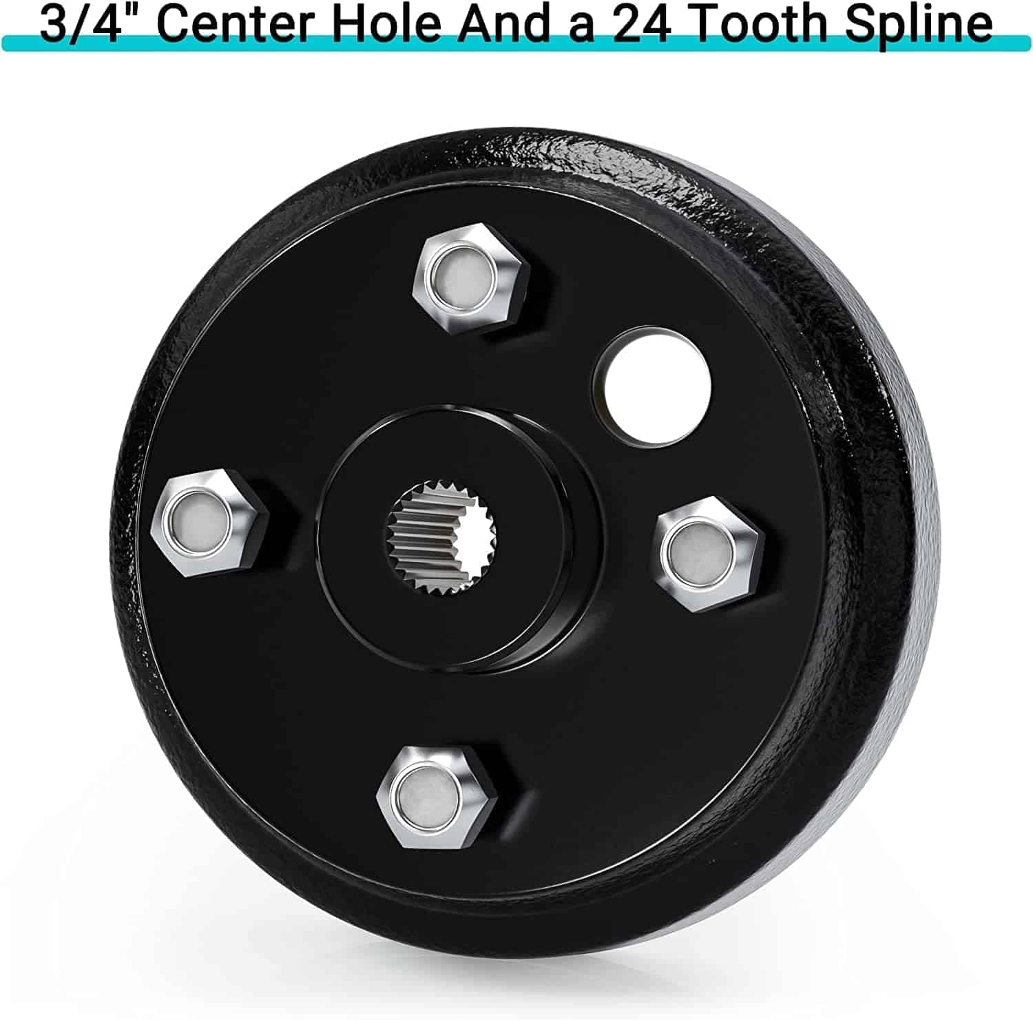 Ensamblaje del Tambor del Freno/Buje (Eléctrico) para EZGO TXT 10L0L 19186G1P. Este producto es utilizado en vehículos eléctricos E-Z-GO actuales desde 1982 y vehículos a gas de 2 ciclos de 1982 a 1993. El estriado del buje y el estriado del eje trasero deben ser coincidentes para un funcionamiento adecuado. Este buje/tambor es un reemplazo del buje y tambor anterior y tiene el estriado de estrella en lugar de la llave recta. Cuenta con un agujero central de 3/4 de pulgada con un estriado de estrella de 24 dientes. Es importante tener en cuenta que este buje/tambor NO operará con una interfaz de eje/buje con llave, ya que se mantiene en su lugar por una tuerca con castillo y una arandela gruesa. Asegúrese de reemplazar tanto el buje como el eje trasero si uno de ellos está desgastado para evitar daños futuros en el estriado del buje.