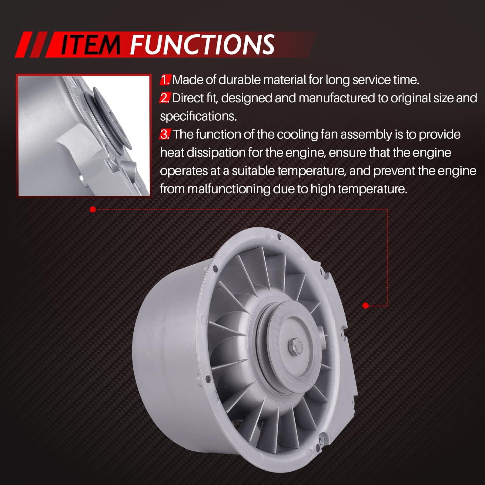 3. Alto rendimiento El ensamblaje del ventilador de refrigeración está hecho de material metálico de primera calidad. Ha sido sometido a pruebas exhaustivas para garantizar rendimiento y calidad duradera. Tiene la misma forma, ajuste y función que la pieza original OEM, lo que permite reemplazar directamente el viejo ensamblaje del ventilador de refrigeración.