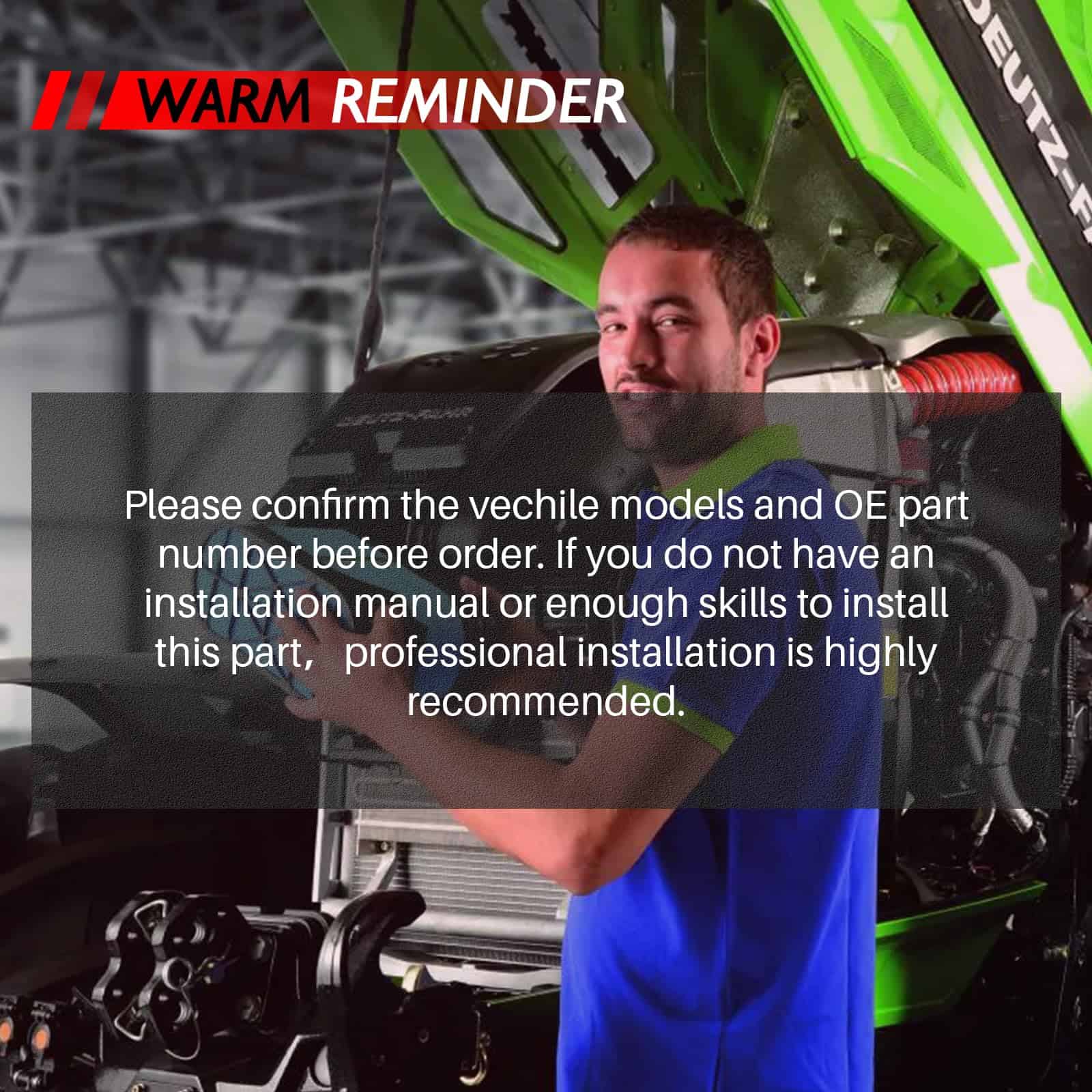 5. Consejos importantes Por favor verifique su número OE y modelo de coche antes de la compra. Y se recomienda instalar profesionalmente. Si tiene alguna pregunta sobre el ensamblaje del ventilador de refrigeración, por favor avísenos. Le brindaremos servicio y soporte oportunos.