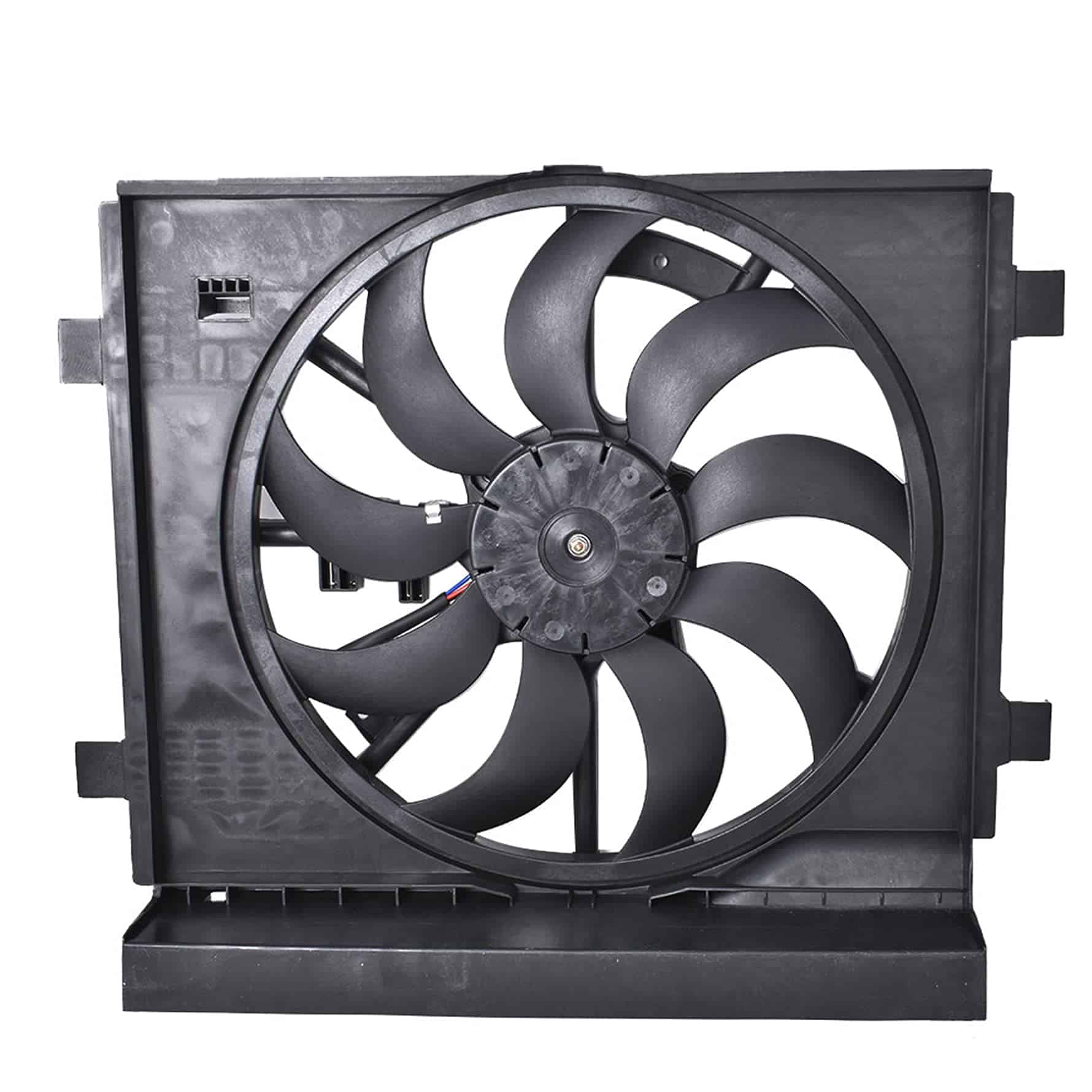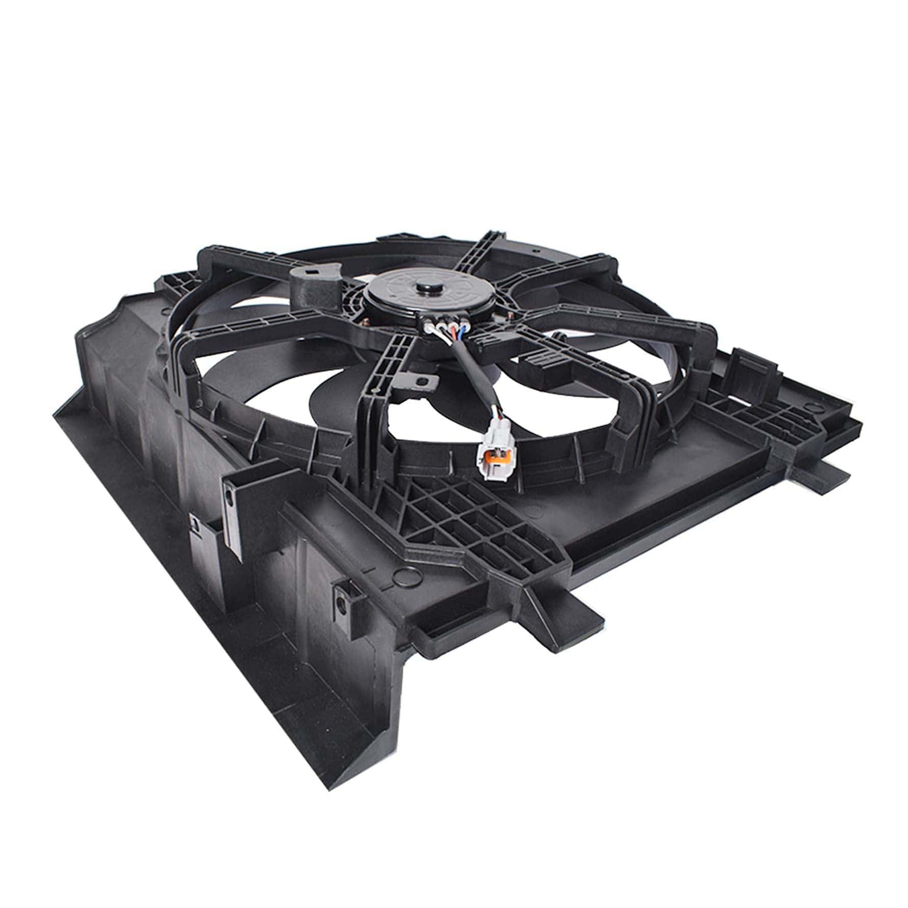 El ventilador mantiene su motor fresco, permitiendo calentamientos y enfriamientos más rápidos, una vida útil del bomba de agua más larga, menos ruido del ventilador, mejor rendimiento del aire acondicionado. Este ensamblaje del ventilador de refrigeración del radiador es un reemplazo para Nissan Sentra 1.8L L4 2013-2018. Viene en color negro y está fabricado en plástico. Incluye los números de parte NI3115146, 214813SH5A, 214819AM0A. El paquete incluye 1 x Ensamblaje del Ventilador de Refrigeración del Radiador.